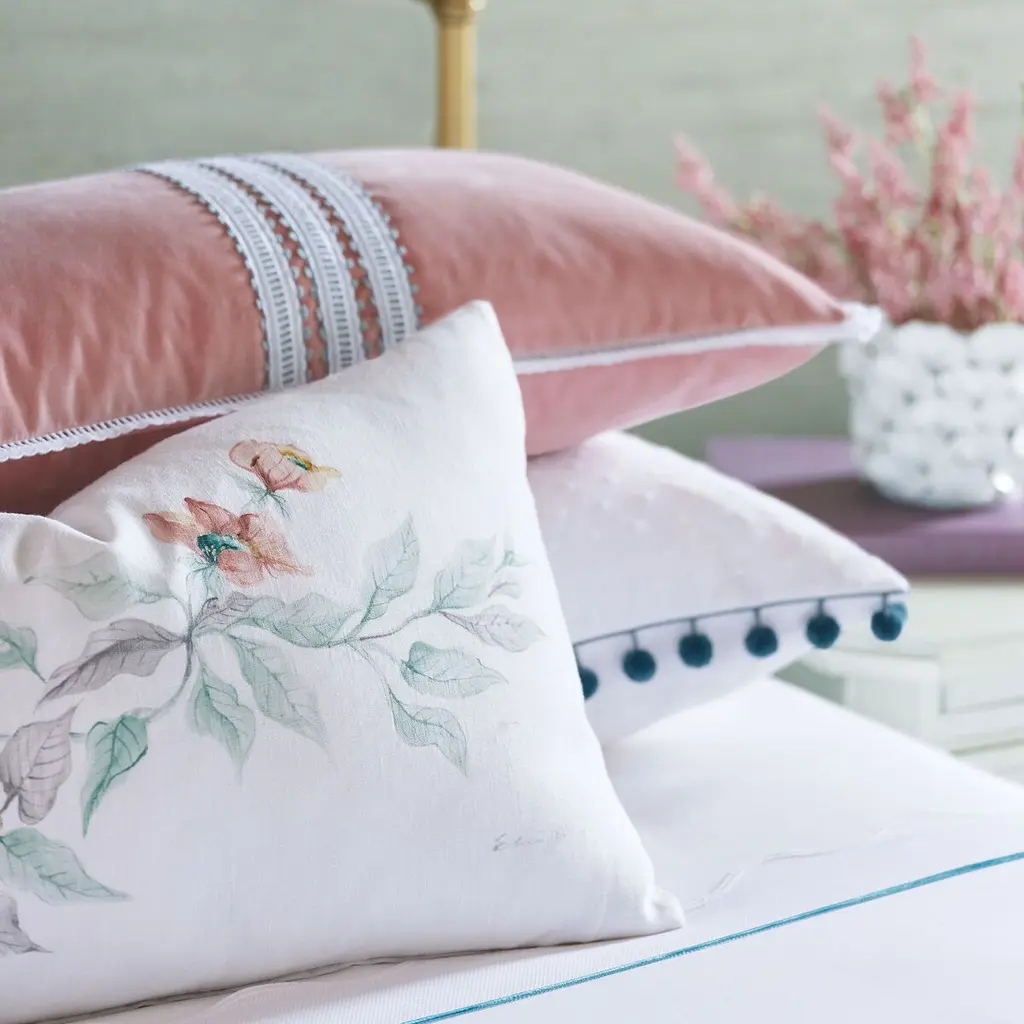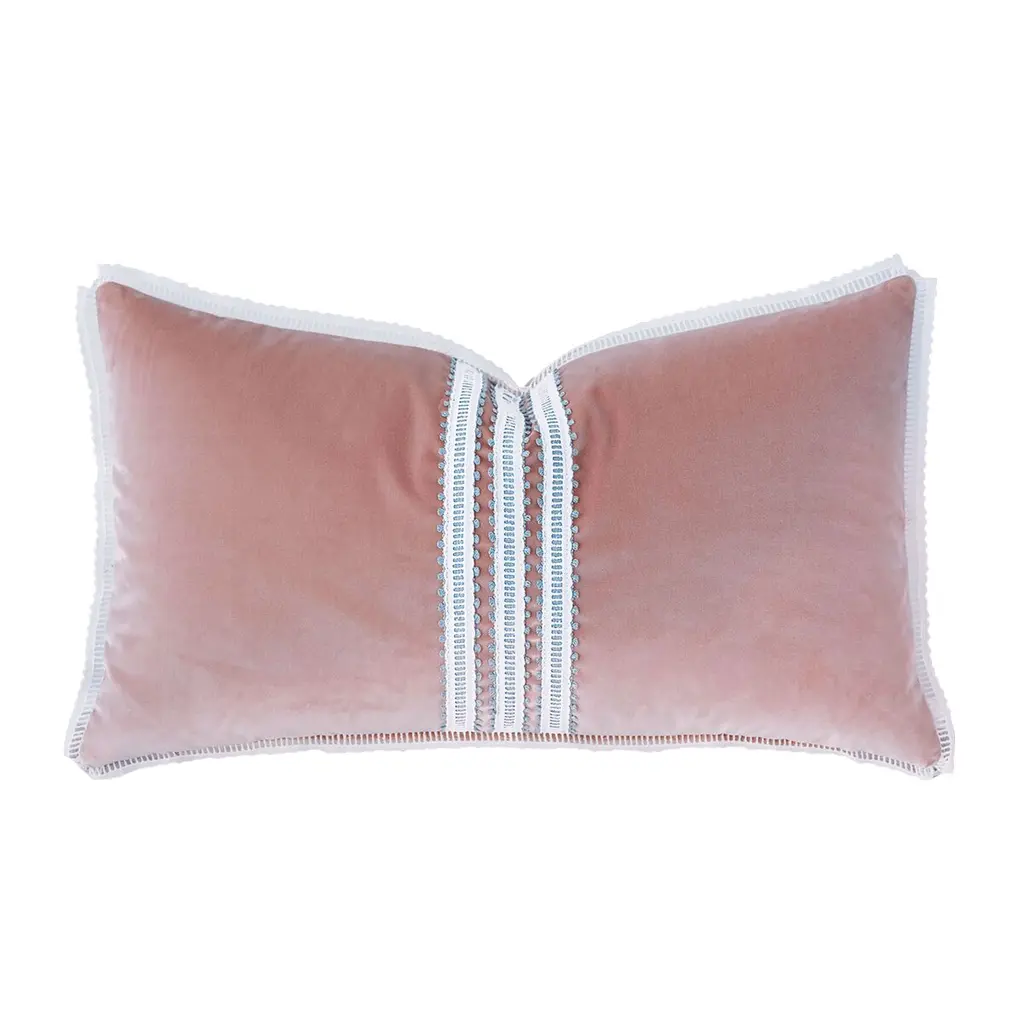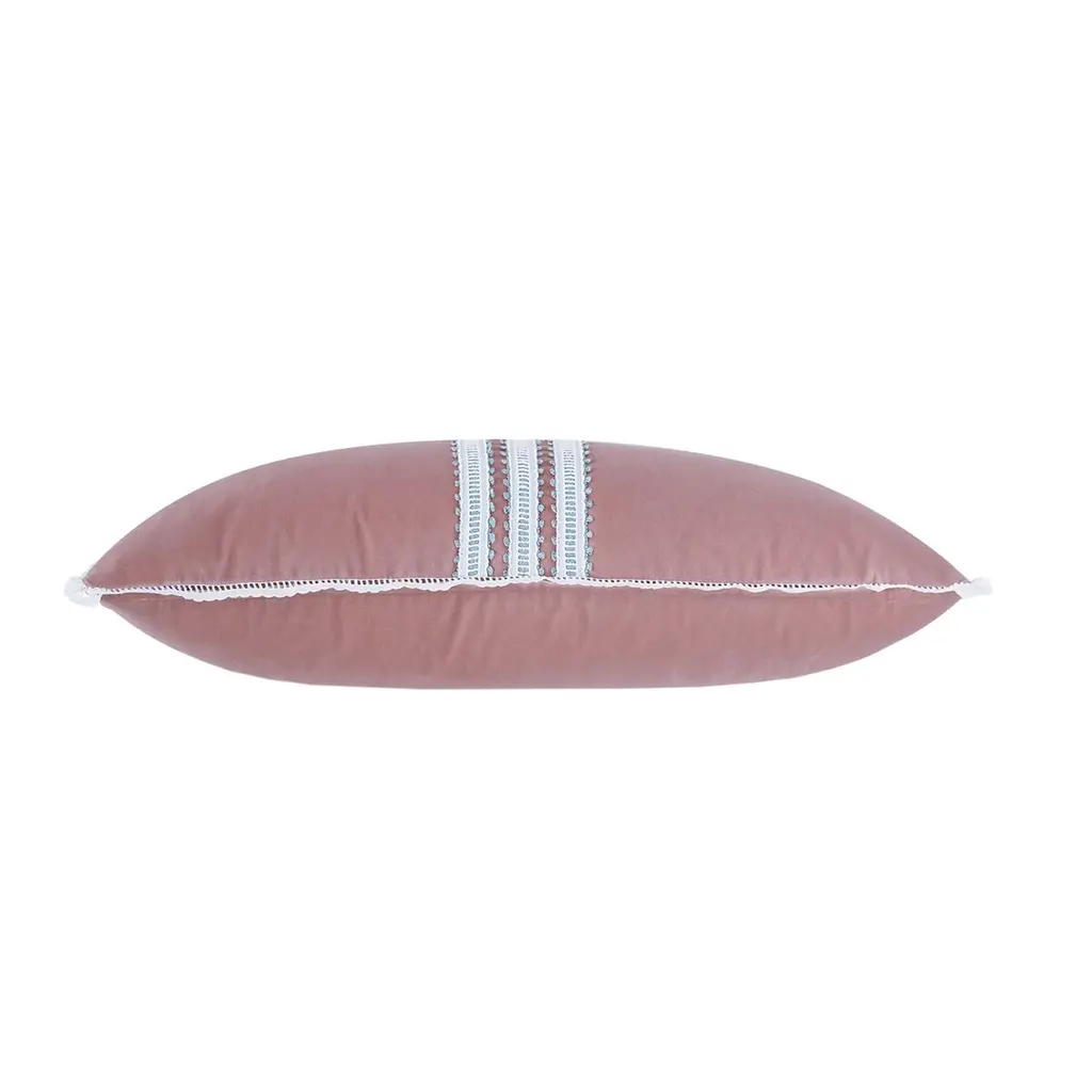 Jules Lacey Trim Velvet Lumbr Pillow, Pink