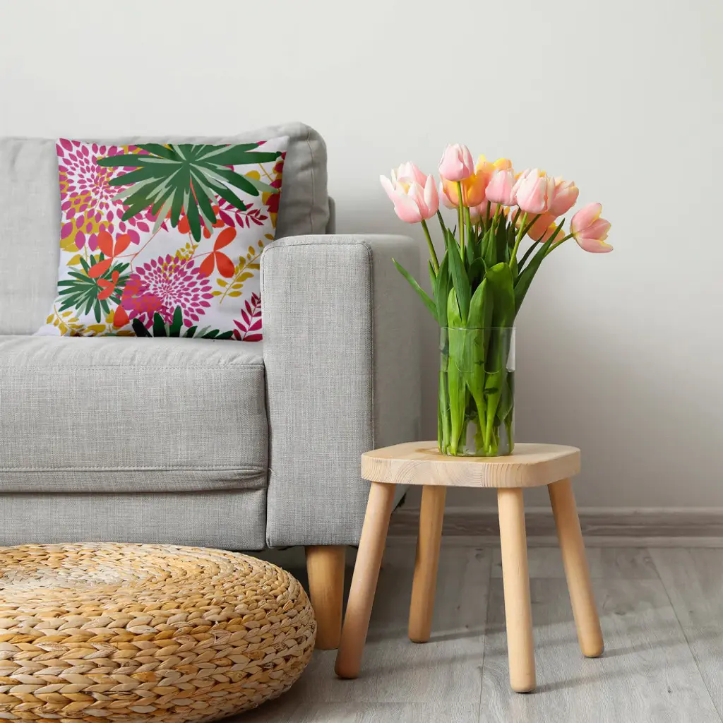 Watch your home decor blossom with a Jumble Floral Pillow from our Floral Frolic Collection. This pillow will add the earthy aesthetics to your bed, sofa or armchair that you''ve been looking for! This decorative pillow is printed on both sides and crafted with a soft, durable polyester exterior, and perfectly filled with down alternative for a crisp look and a comfortable sitting experience. It is sewn closed with a knife edge and can be easily spot cleaned or dry cleaned. The floral designs of this collection will open your home to the beauty of nature with their warm palate.
