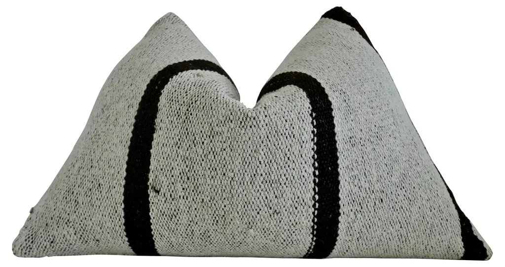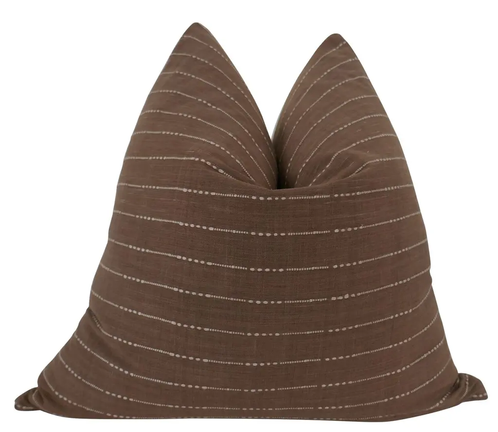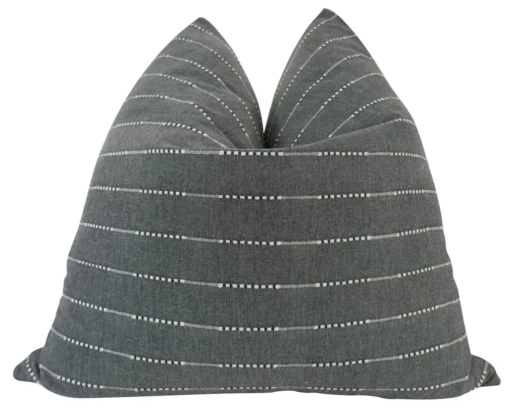 Exclusive to One Kings Lane: Cut and sewn by hand in California, this striped pillow brings artisanal allure to its surroundings. Plushly filled Ultra-Plump feather-and-down insert, with an invisible zipper closure. Solid white, premium luxe 100% linen reverse side.