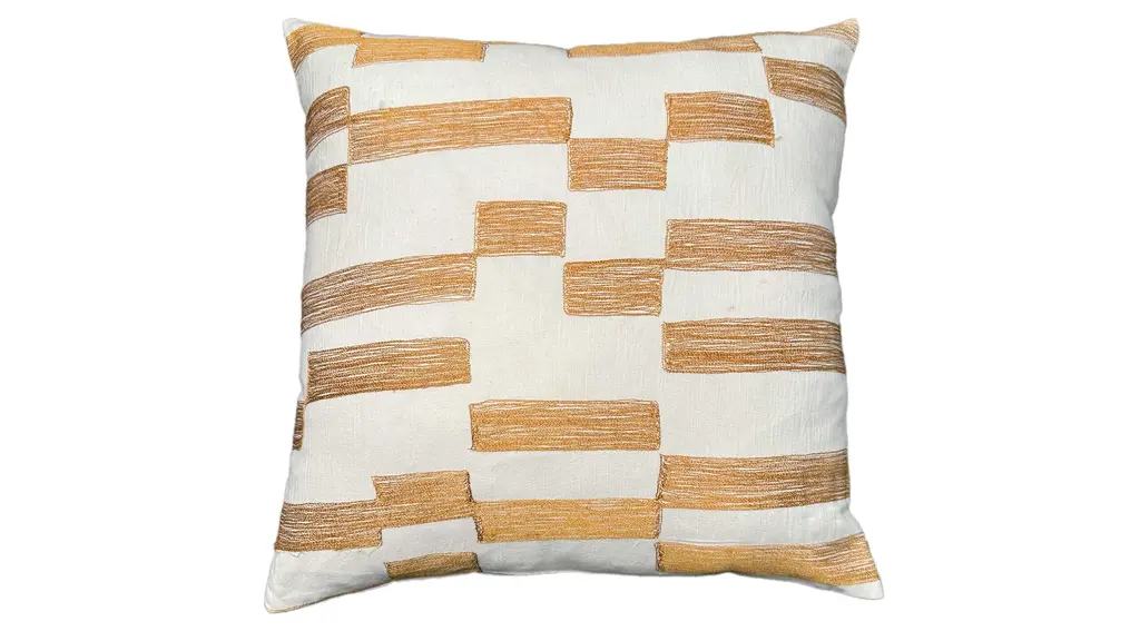 Reimagine the classic checkerboard with a modern twist. Expertly embroidered onto a neutral cotton base, the pattern forms in beautiful jewel tones, adding a touch of modern elegance to your home. No matter the thread color, Kaia’s checked design creates a visually stunning statement that’s up-to-date without feeling retro. This pillow is handcrafted by artisans in India. The cover is made from 100% cotton and includes a down-alternative polyester fiber insert, so it’s ready to style right out of the box. Spot clean or professional dry clean only.