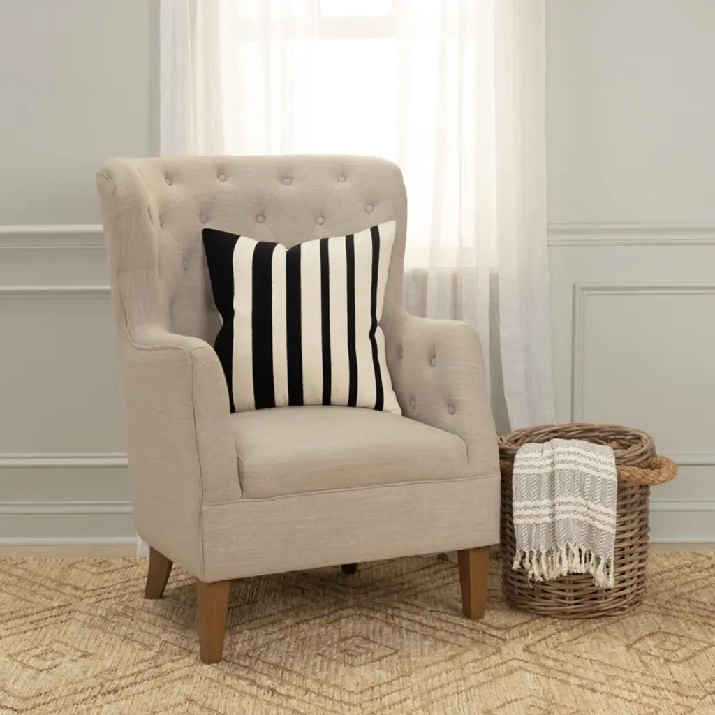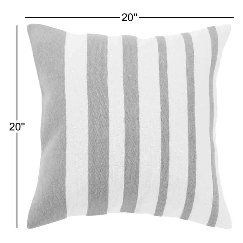 This 100% cotton pillow features an asymmetrical stripe patterning. The stripes are developed using total coverage embroidery. The colors are saturated and fresh. This pillow would be a wonderful addition to all decors that need a strong linear element. The color pairings are strong and this pillow can be used as a stand-alone item or is a delightful coordinate for layering or coordinating across a living space. The back of this pillow is a solid matching back with a hidden zipper closure for ease of fill.