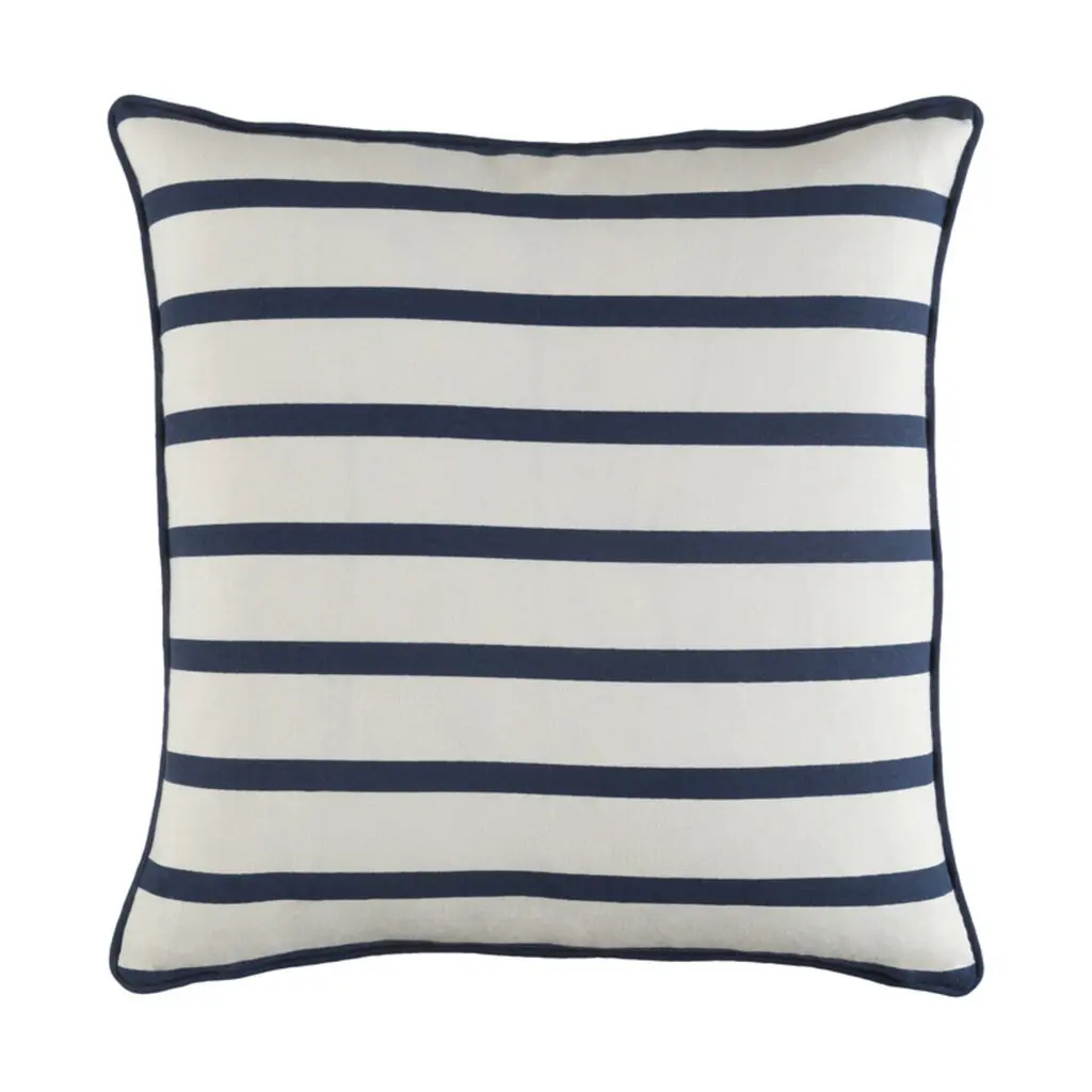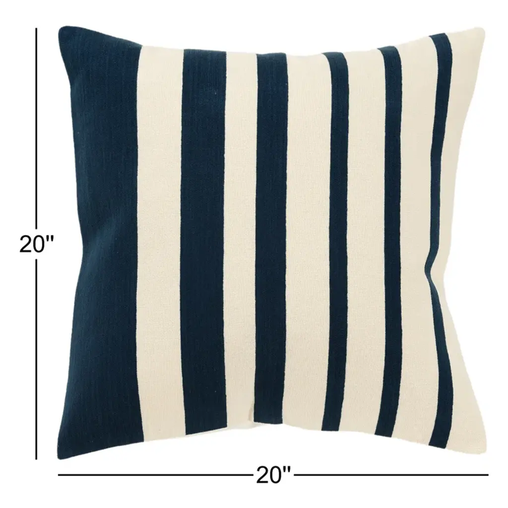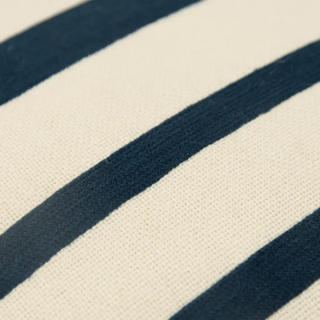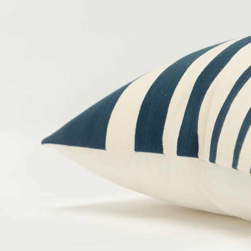 This 100% cotton pillow features an asymmetrical stripe patterning. The stripes are developed using total coverage embroidery. The colors are saturated and fresh. This pillow would be a wonderful addition to all decors that need a strong linear element. The color pairings are strong and this pillow can be used as a stand-alone item or is a delightful coordinate for layering or coordinating across a living space. The back of this pillow is a solid matching back with a hidden zipper closure for ease of fill.