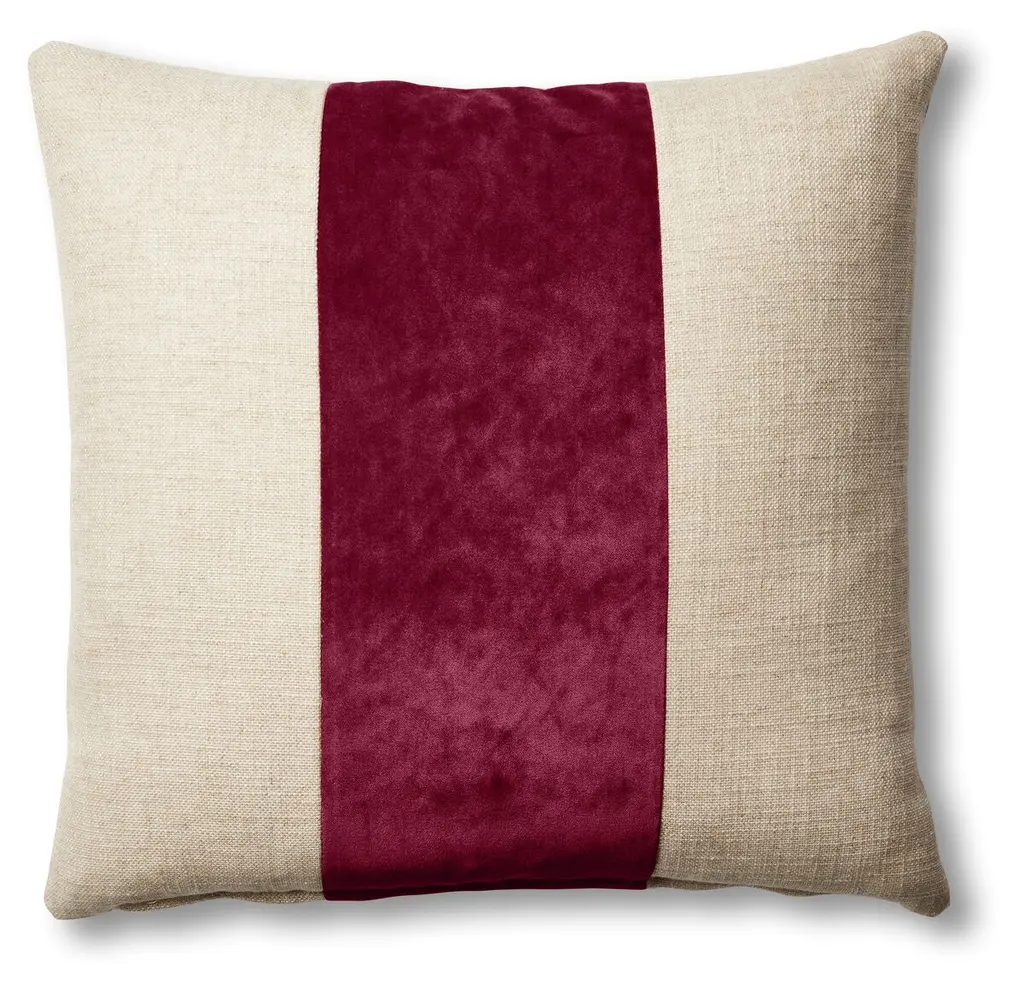 Stylish and simple, this throw pillow is perfect for breathing new life into your seating arrangement. Made in India, this reversible design features a multi-material construction crafted half from cotton with a large, bold linen stripe down the center of the pillow. Easy to incorporate into a variety of different decor, simply choose the color of the stripe so you can match (or mix!) it into your existing decor.