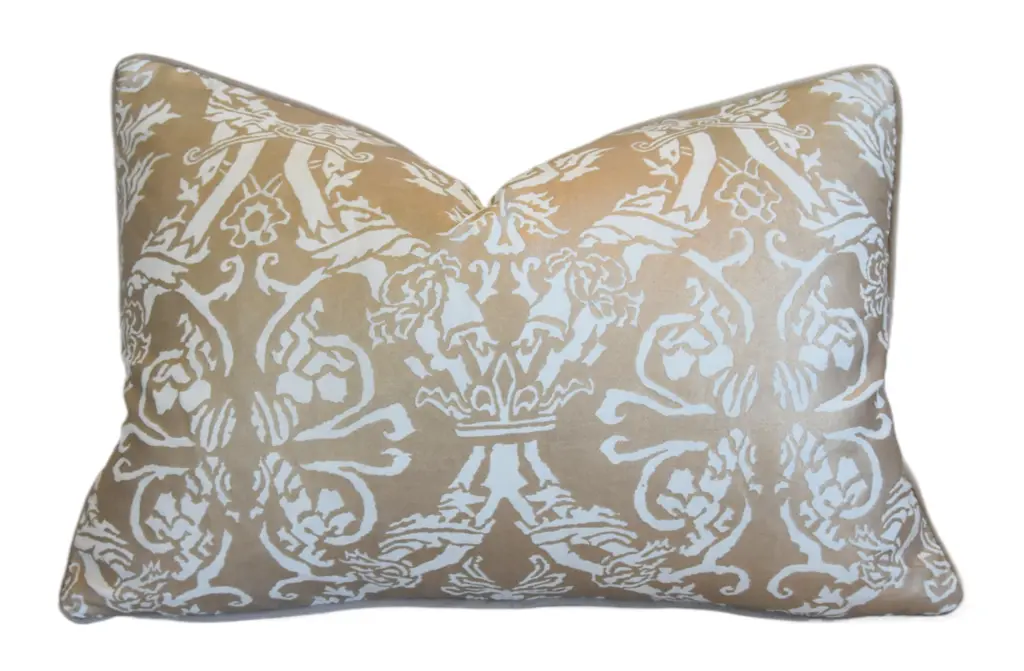This pillow features Katsura Stripe with a knife edge finish. A delicate, airy design that combines stylized floral elements and intricately detailed stripes, Katsura Stripe is a classic easy-to-use medium-scale fabric that layers beautifully with other patterns. Printed on a 100% linen ground, it evokes the unique charm and character of traditional hand-block textiles. Pillow includes a feather/down fill insert and hidden zipper closure.