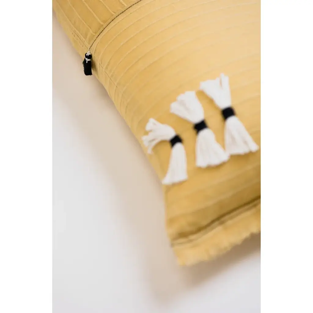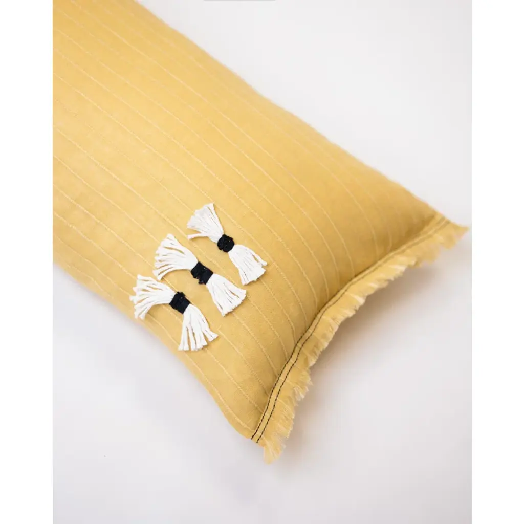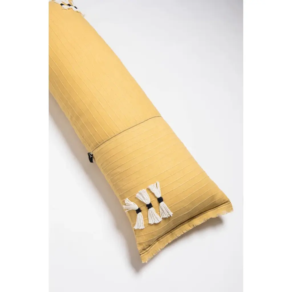 A new staple, this x long bolster to match our Cambria duvet cover is understated enough to be solid, yet boasts a touch of interest. Small tassels add a dramatic contrast to subtle textures.