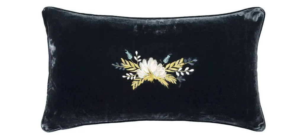 With lush textures and finely detailed embroidery, Kerplopolis Accent Pillow is an elegant accent piece for any bedroom. Boot stitch embroidery decorate the borders for an elegant Western touch.