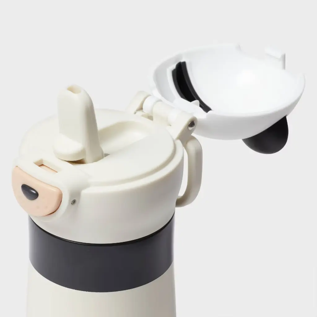 Make hydration fun and easy for your little one with this Panda Animal Water Bottle from Pillowfort™. This water bottle is adorned with a panda face, ear accents on the lid, and a black and cream-striped body that will excite your toddler. Made from stainless steel, this printed water bottle features a snap button that pops open the lid with a simple press and a built-in straw for convenient sipping. It is suitable for both hot or cold beverages and features a top handle for easy carrying.