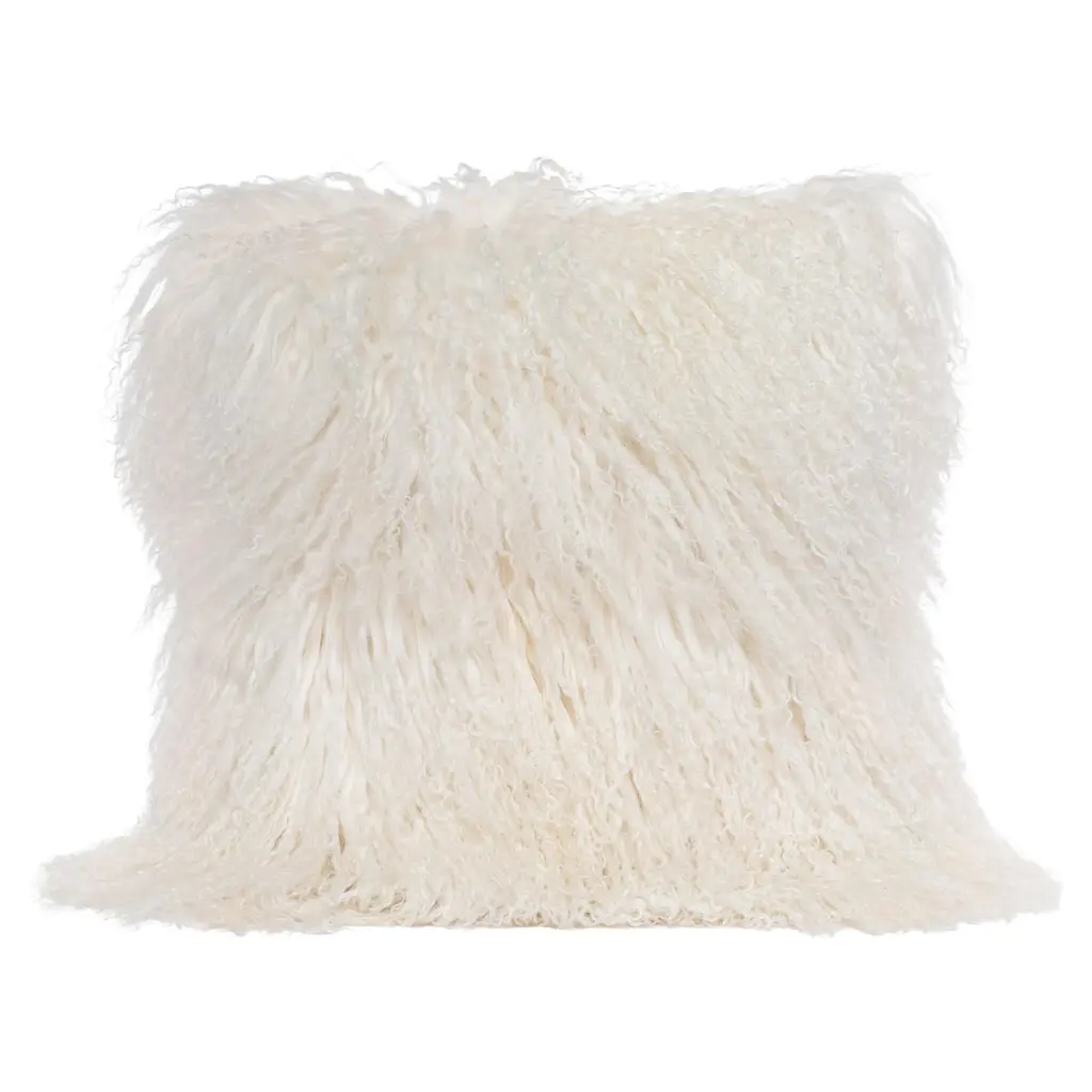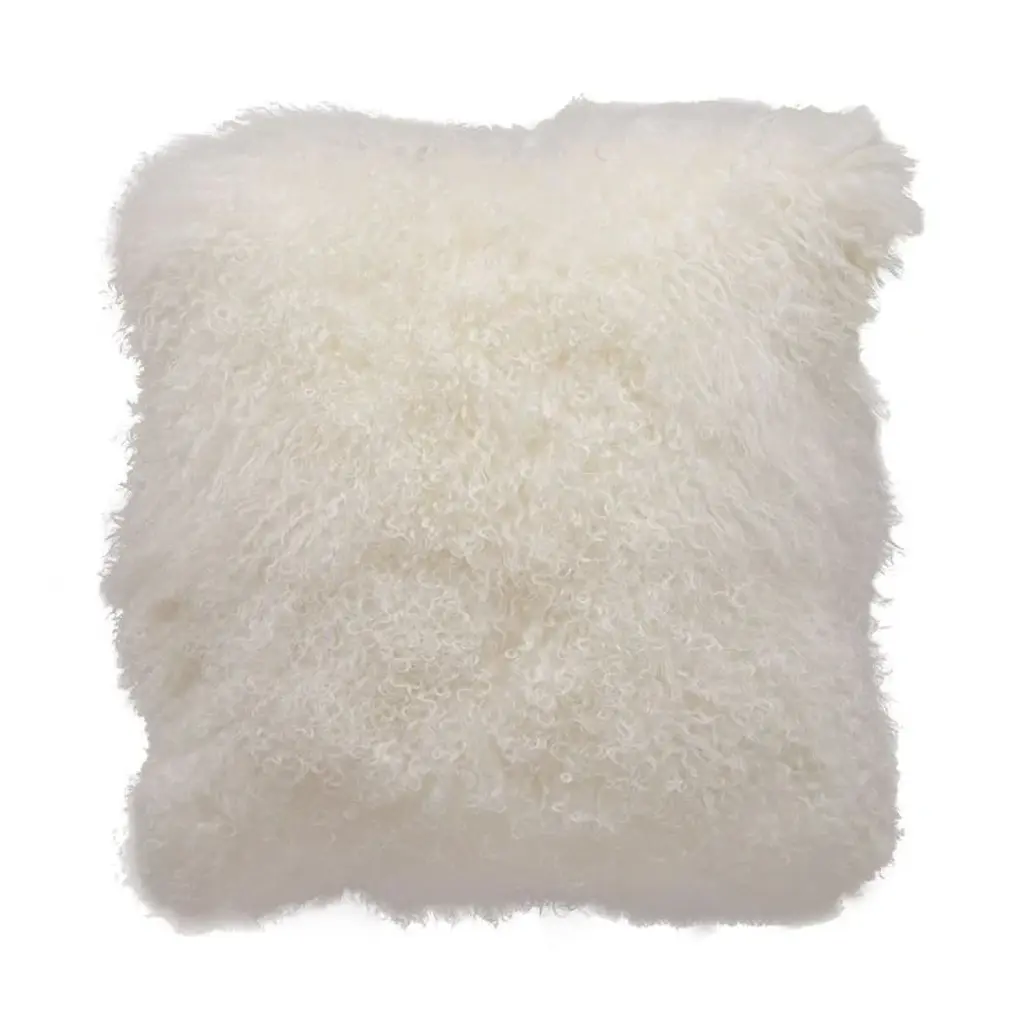 Mongolian sheepskin throw pillow embellishes an elegant home. With its delicate and natural curly texture and silky wool providing exceptional softness, its lush and rich texture also brings sophistication to your living space.