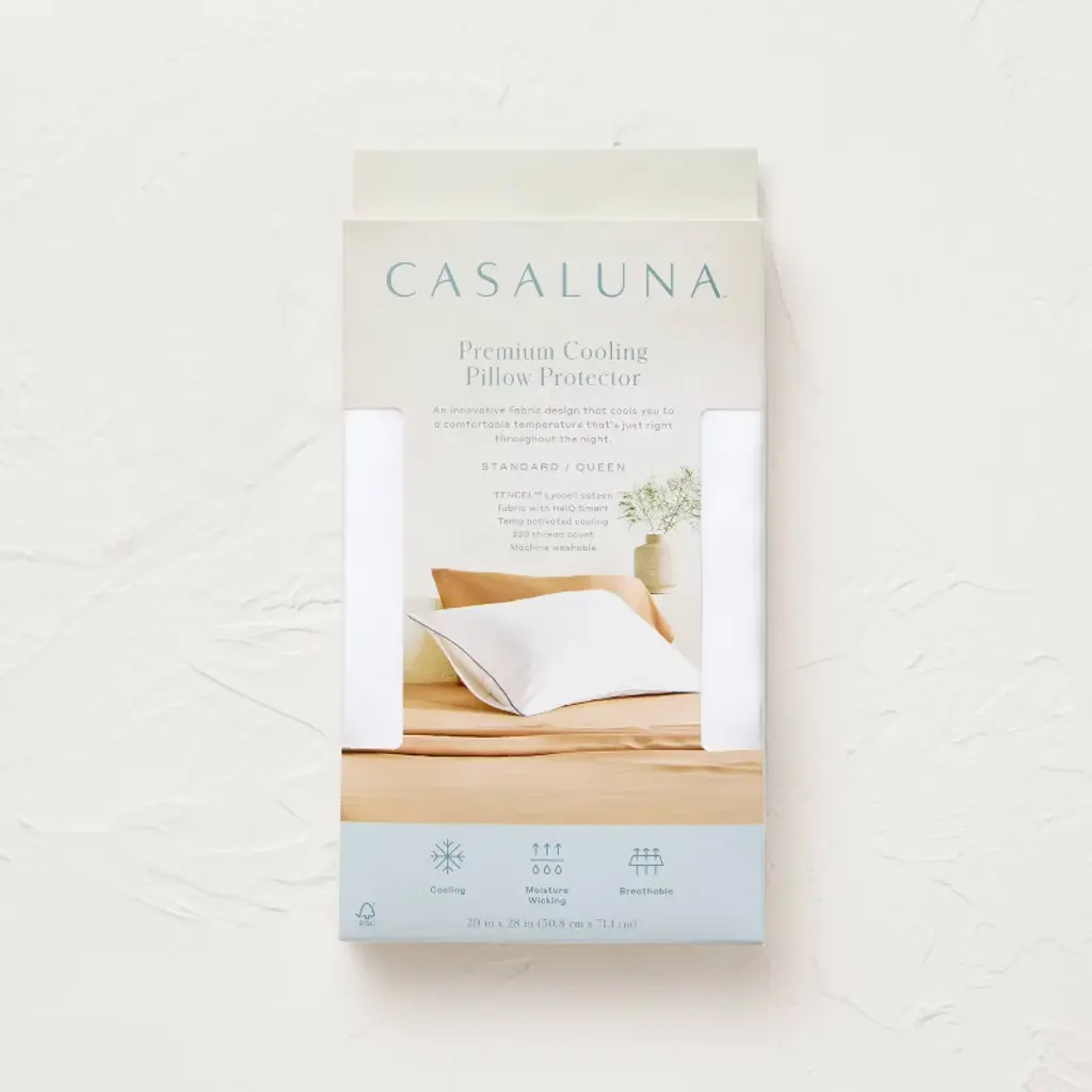 Shield your pillow from spills and stains with this Premium Cooling Pillow Protector from Casaluna™. Made from 100% lyocell fabric, this rectangular pillow protector helps extend the life of your pillow while enhancing sleep hygiene. The cooling properties help you stay comfortable all night long, and its machine-washable construction makes cleaning a breeze.Casaluna™: Where calm and comfort are naturally at home.