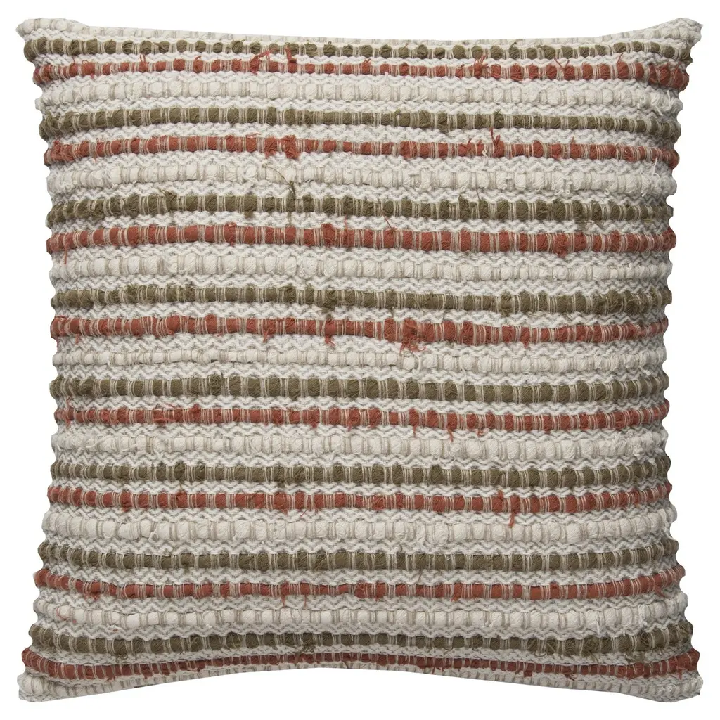 With its unique jacquard woven background and channel woven stripes in a khaki, beige, and natural color palette, this 20”x20” pillow creates an impression with its small chevron weaving pattern on either side of the stripe. Accent any living space with this dimensional throw pillow, designed to give your space a cozy feel with subtle sophistication.