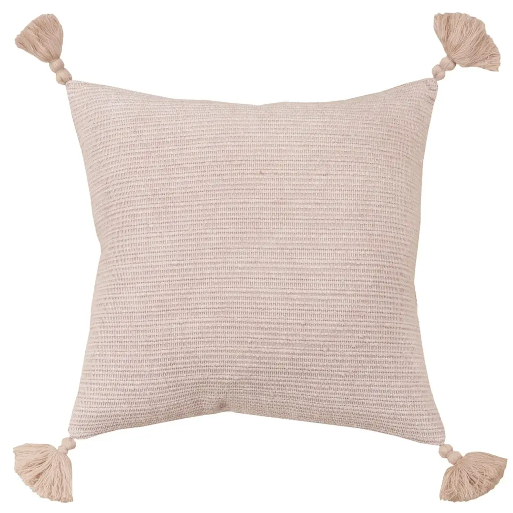 This gorgeous accent pillow will make a beautiful addition to any modern industrial or urban chic décor. Made with 100% cotton, this knife edged woven pillow is not only soft and cozy, but it also adds a touch of sophistication to any refined living space. Measuring 20 x 20, this transitional pillow features a solid woven stripe pattern in bold black. Adding to its unique charm, this pillow features four corner tassels accenting its crisp knife edged construction and providing a polished finish that's truly urbane. Add a pop of color and texture to your favorite chaise, accent chair or couch and elevate the style in any room in your home.