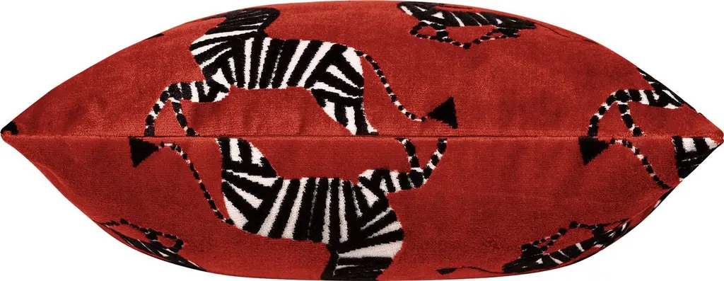 Exclusive to One Kings Lane: Zebras frolic on both sides of this velvet throw pillow. Made in the USA, the pillow is amply filled with plume feathers for long-lasting comfort. Zipper closure.