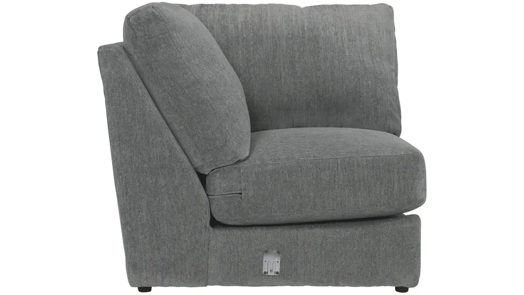 Gather, relax, and sink into comfort with the ultra-plush Kristoff sectional collection. Upholstered in a soft slate-gray fabric, the corner is just one of the components of this collection designed for modern lounging with deep seats, supportive cushions, and a wraparound silhouette that invites everyone in. A mix of textured and patterned throw pillows in shades of light gray and ice blue adds visual interest and cozy layers.