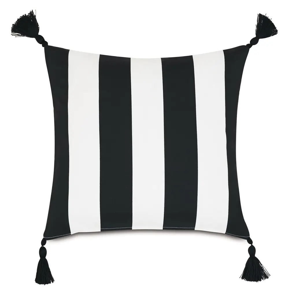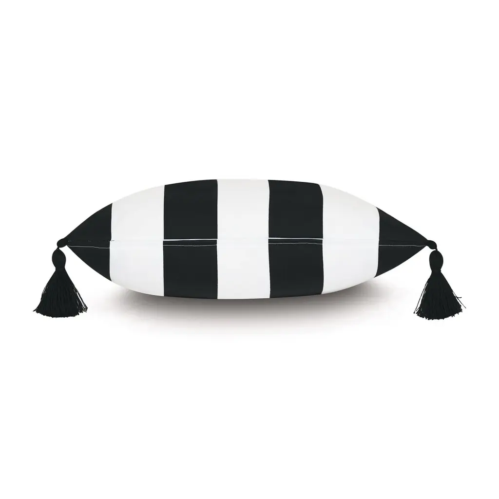 Designed in collaboration with Celerie Kemble exclusively for One Kings Lane: Bold black-and-white stripes plus tasseled corners give this outdoor pillow panache to spare. And because it's made with weather-resistant performance fabric, you'll be able to enjoy its good looks for seasons to come. Hidden zipper closure. Insert included.