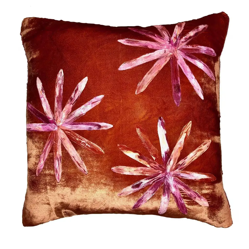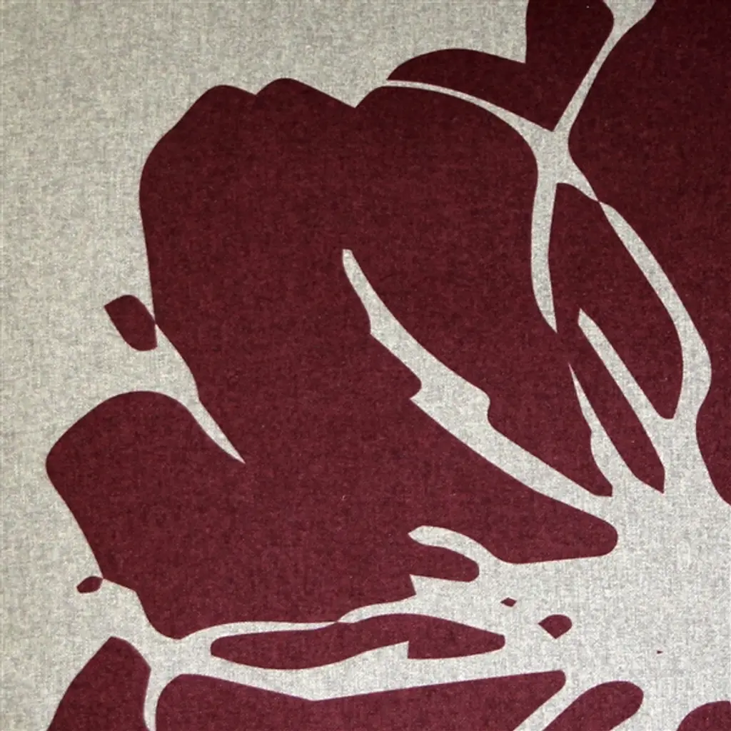 This rich burgundy red floral pillow is a Kukamuka original design. Printed on a soft gray felt fabric, the Kukamuka Lily pillows are available in four colors and are designed to coordinate with the other pillows from the Scandinavian inspired, Kukamuka collection. Size: 19"x19" Square Fabric: 100% Polyester Print design on front only, back is same fabric unprinted Knife edge seams Hidden zipper closure Cold water wash separately, air dry Made in Canada in Pillow Decor's Vancouver workroom.