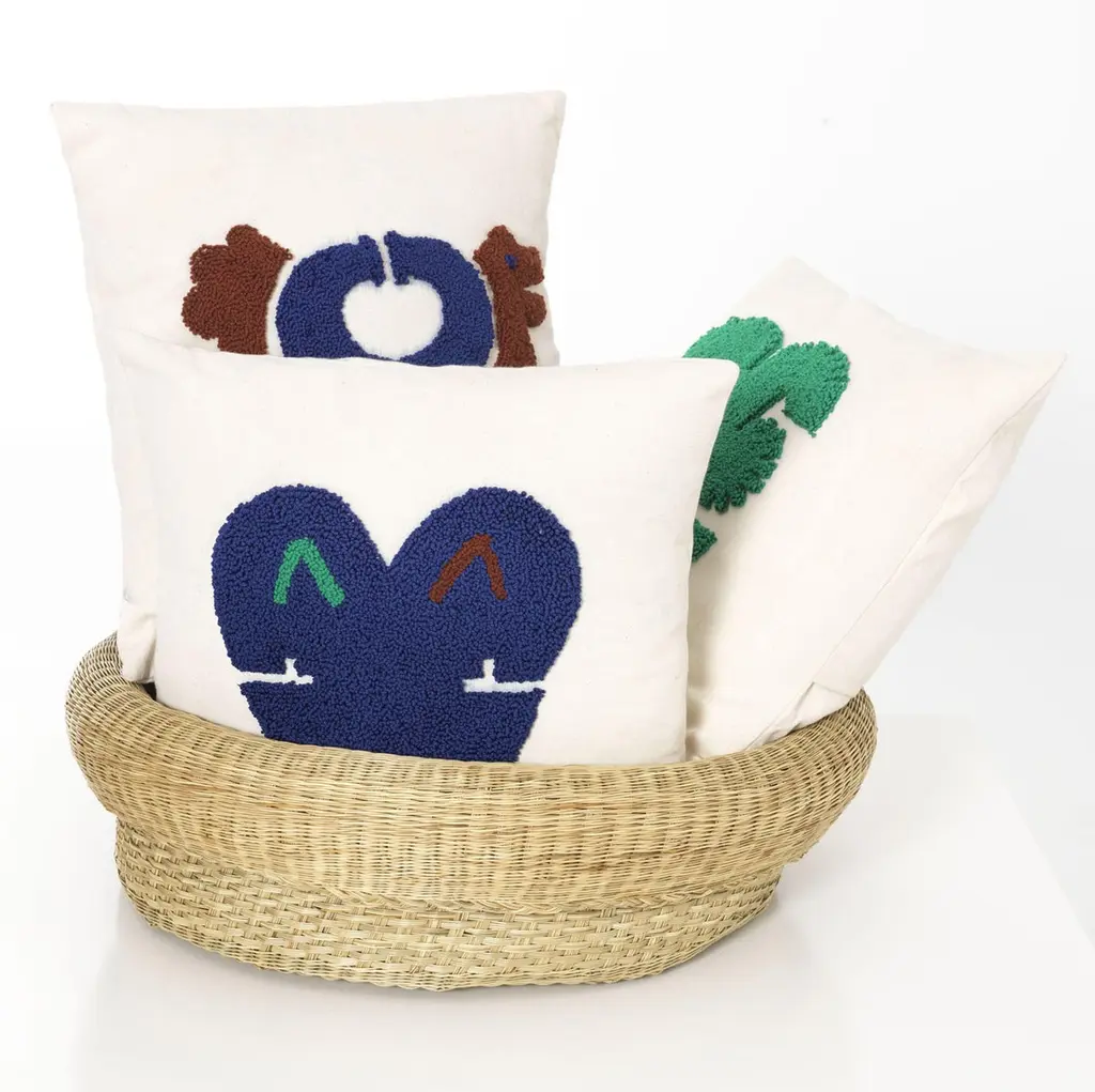 Kukuy nido cushion by Sebastian HerknerMaterials: 100% cotton. Technique: Hand-woven in Colombia. Dimensions: W 38 x H 38 cm Available in colors: Nature, night blue, beige pink, terracotta. The Nido Kukuy cushion combines joyful colors with intriguing hand-crocheted motifs. Its cotton cover is decorated with a fluffy, heart-shaped macramé detail, making the cushion an eyecatcher on any sofa or lounge chair. Sebastian Herkner designed the Nido collection after a visit to Bogota’s Museo del Oro, the gold museum, where he discovered Colombia’s ancient jewelry. The color combinations are inspired by the hummingbirds Sebastian saw in the Reserva Entreaguas. Overall, the Nido cushion collection includes five motifs, available in various vibrant color shades. Each cushion is made by hand in small workshops in Columbia’s Reserva Enteragua region. The people living in this area of the Andes have kept the old crocheting techniques alive. Just the preparation of the cotton and wool takes up to three days, while the artesanos and artesanas – as the craftsmen and women are known in Colombia – need five days to make one cushion. German designer Sebastian Herkner is a long-term collaborator of Ames and has visited Colombia multiple times to experience the country’s cities, nature and people first hand. He also visited many of the ateliers that Ames has partnered with to learn about the unique traditional crafts of Colombia's regions. A sought-after contemporary designer and recipient of many industry awards, he has worked with many international design brands, creating intriguing pieces that showcase his intuition for interesting material, color, and texture combinations.