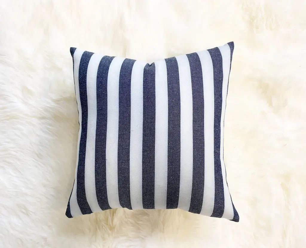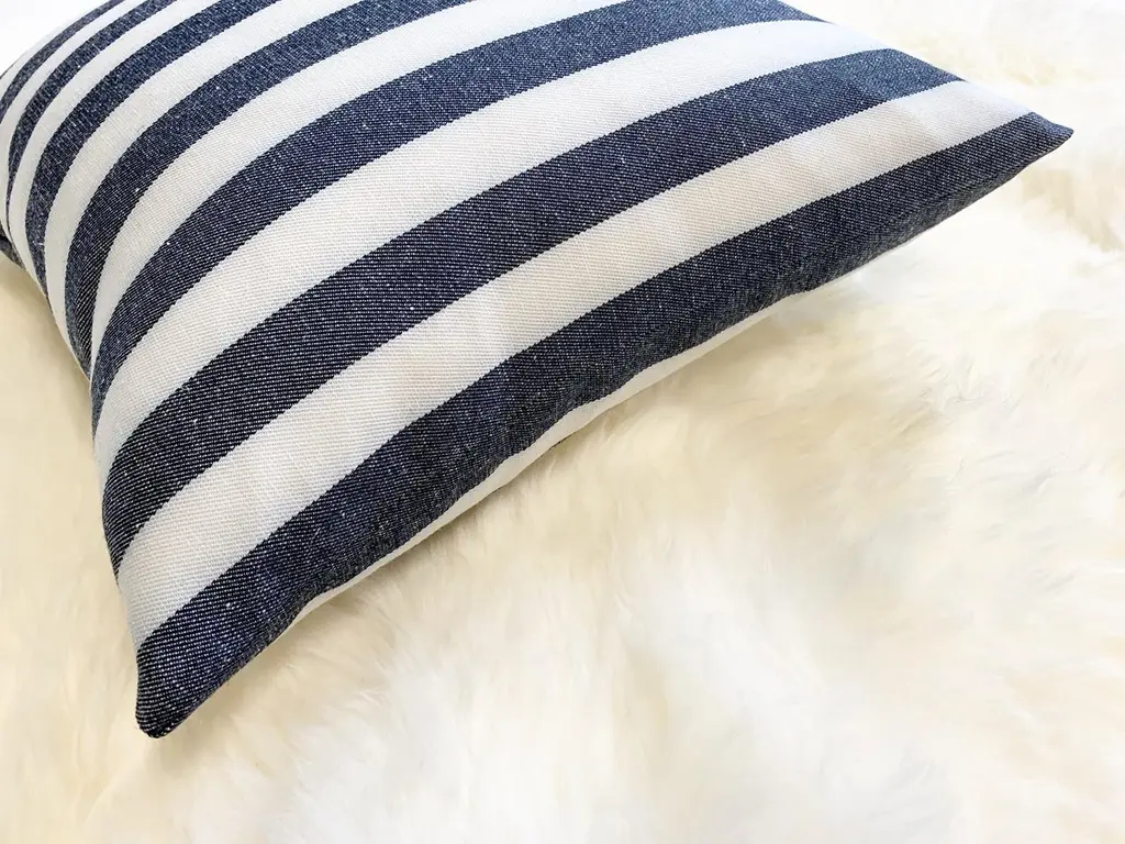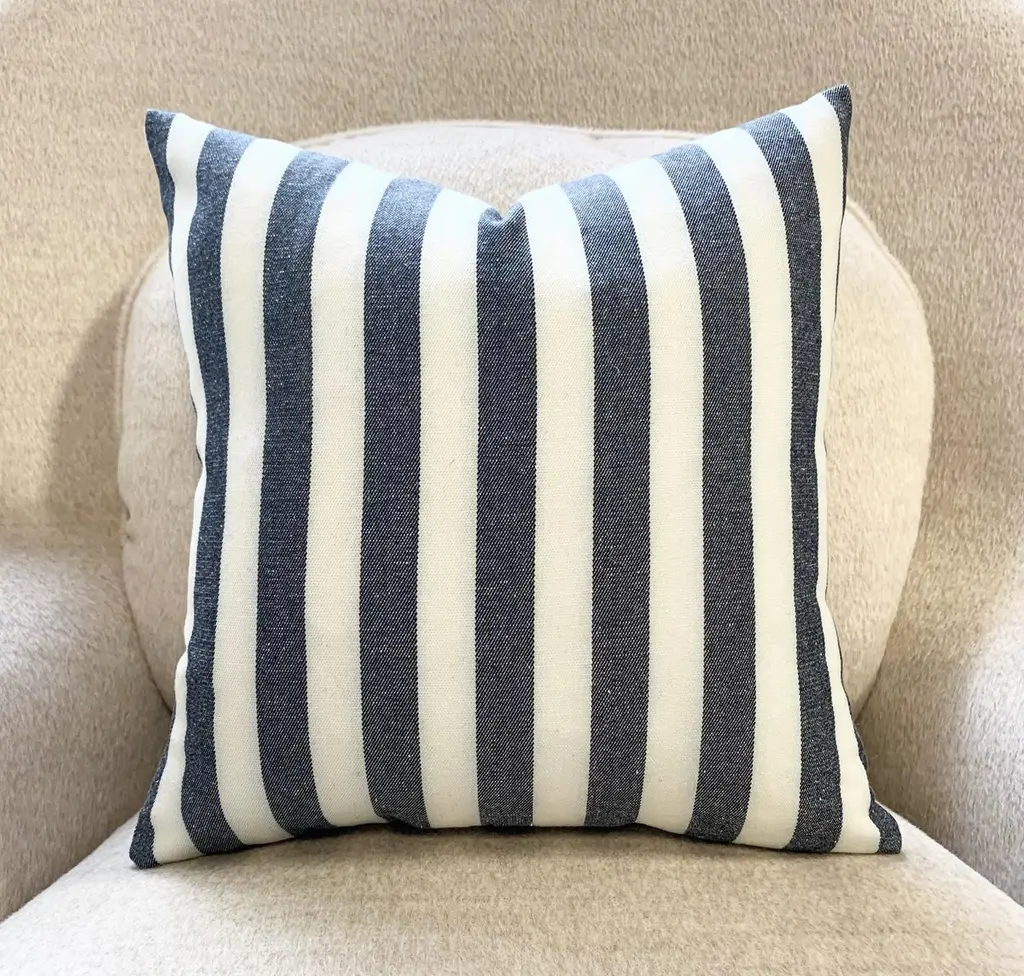 Kule's incredibly chic stripe fabric was used to make this beautiful pillow crafted in our Saint Louis studio. Down feather insert included. Measures: 14".