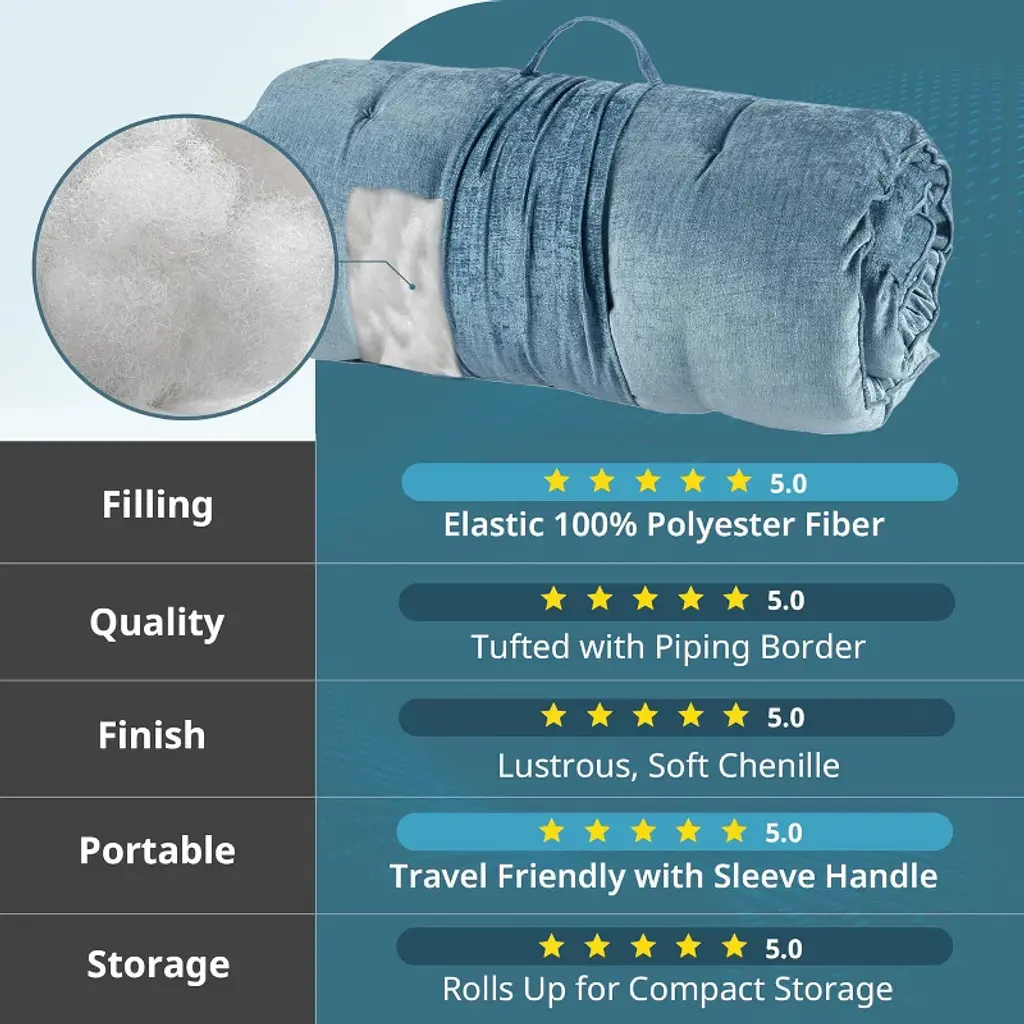 Kwpzqeb Foldable Chenille Lounge Floor Pillow Cushion, Folding Cushion With Travel Wrap, Tufted Seat For Meditation, Yoga, Reading, Aqua (74''x27")
