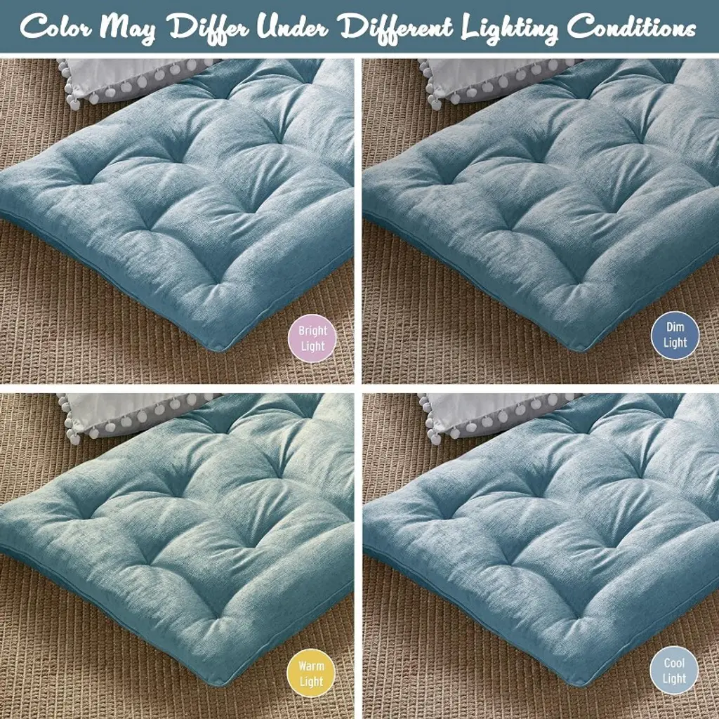 Kwpzqeb Foldable Poly Chenille Light Weight Lounge Floor Pillow Cushion Tufted Seat For Meditation, Game Playing, Yoga, Reading With Travel Wrap, Blue