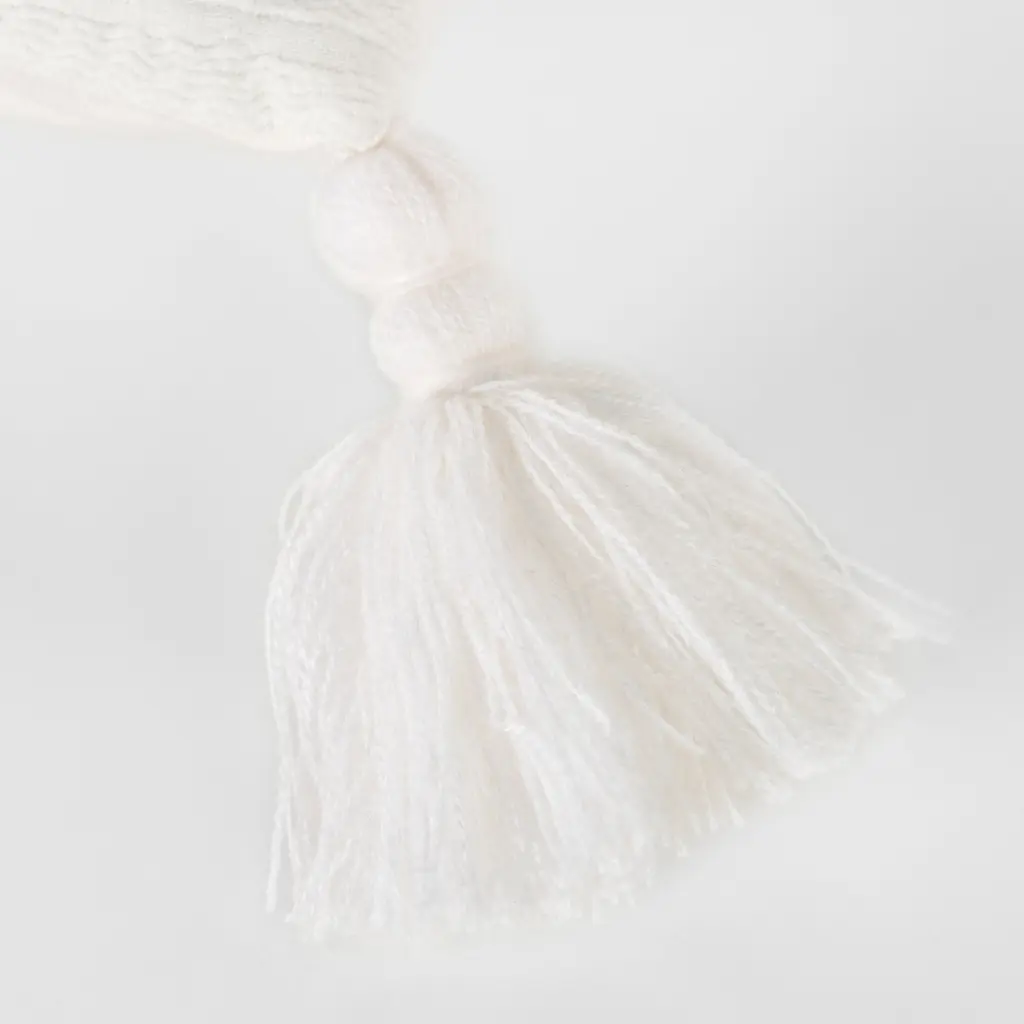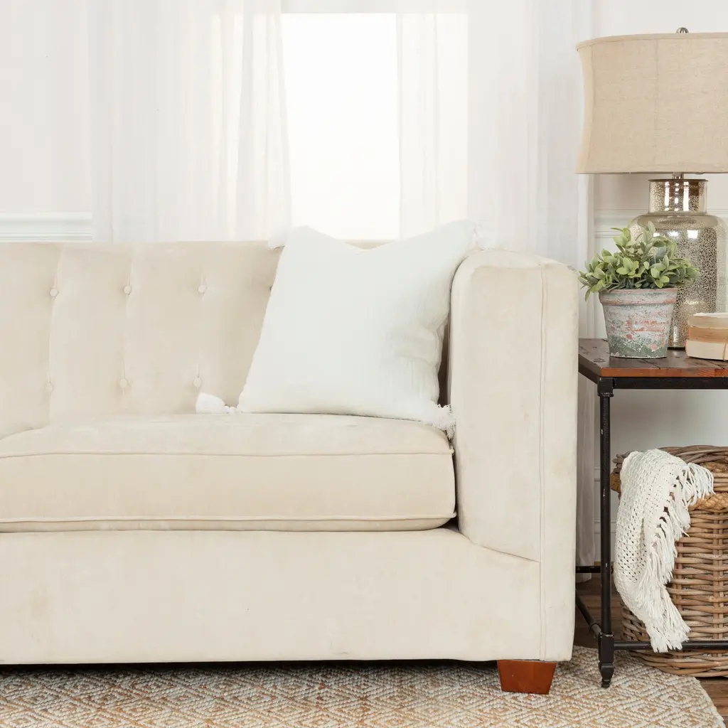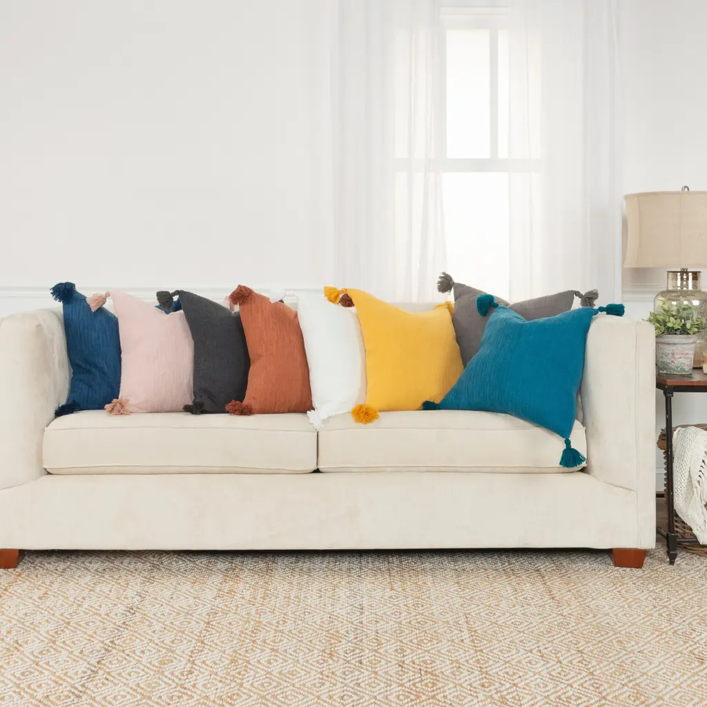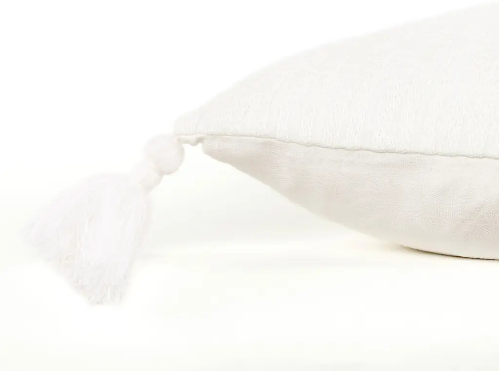Knife edged, this solid colored pillow features an abstract woven pattern.