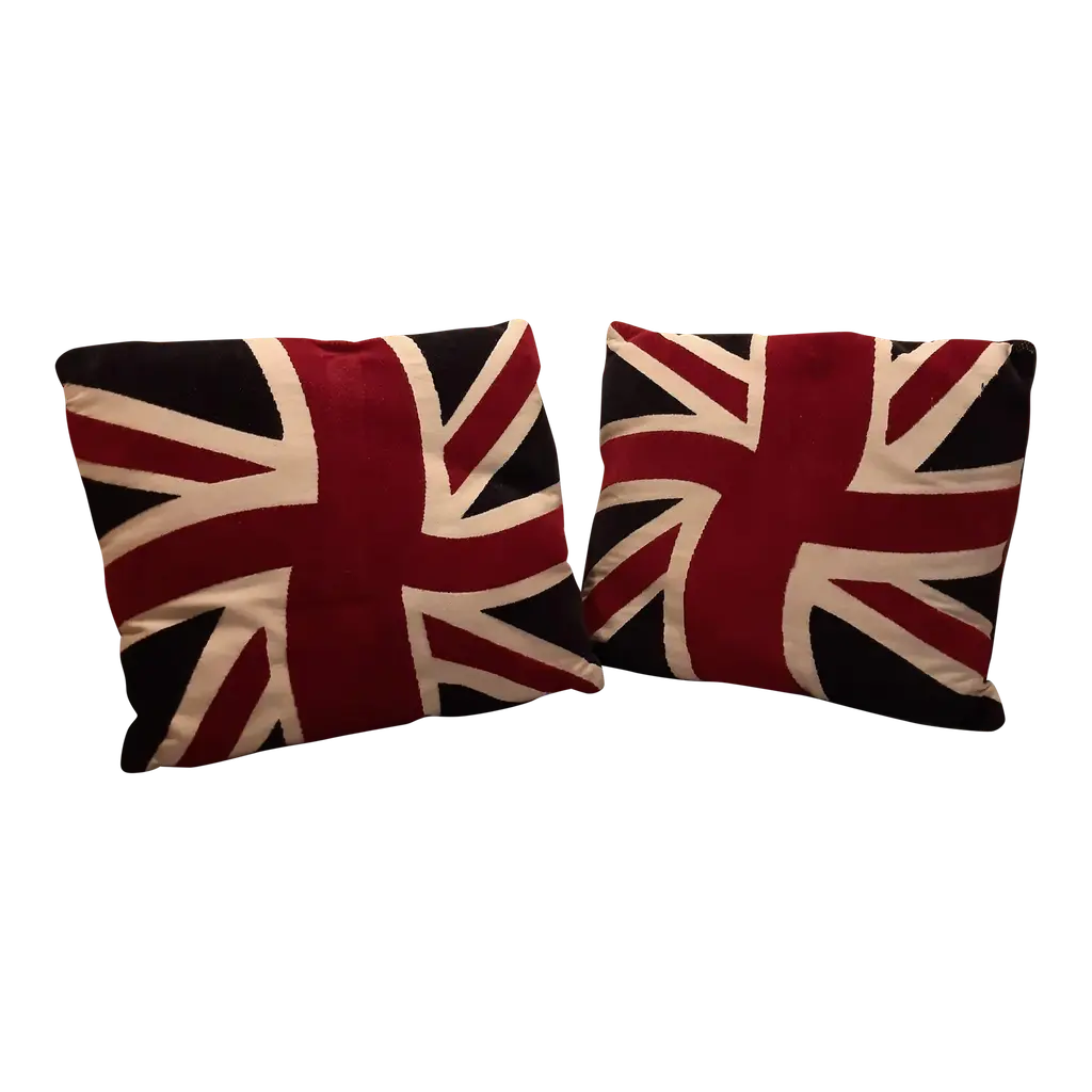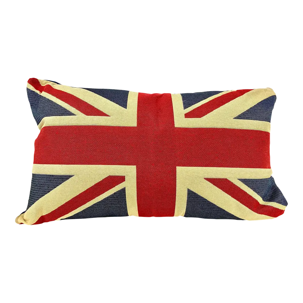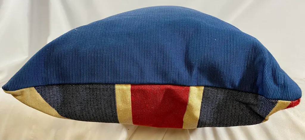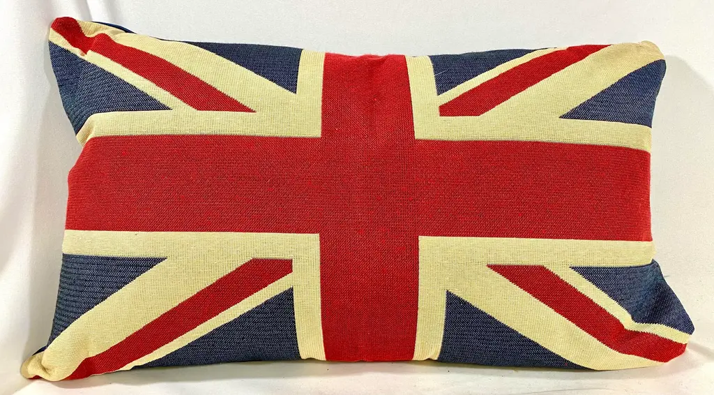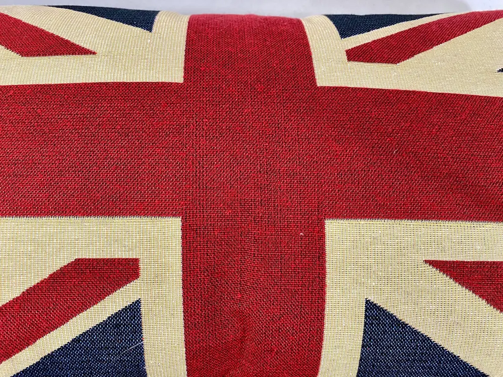Large British Union Jack Flag Bolster Pillow With Insert - Made in U K What a great way to get into the spirit of the King’s Coronation!!! Bring a bit of England into your own home. This playful British Union Jack Flag bolster pillow was made in Wales, UK., by a small cottage designer/manufacturer owned by a lovely couple. This pillow is new and has not been used. Dry clean only. Pillows are sold only with insert.