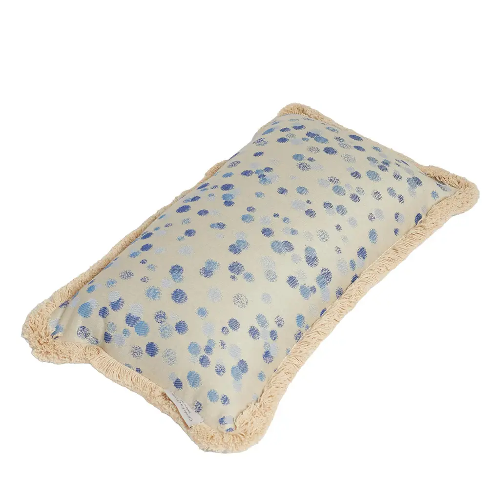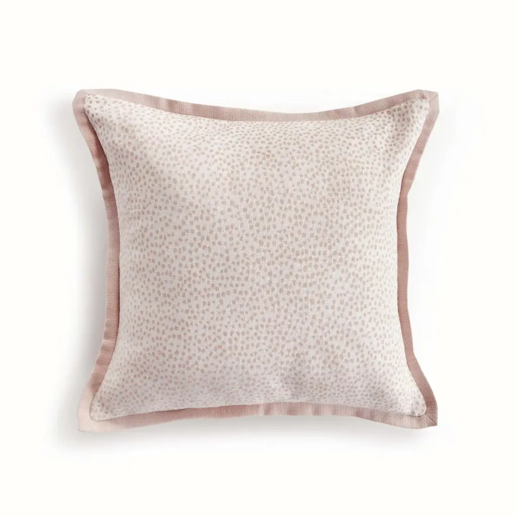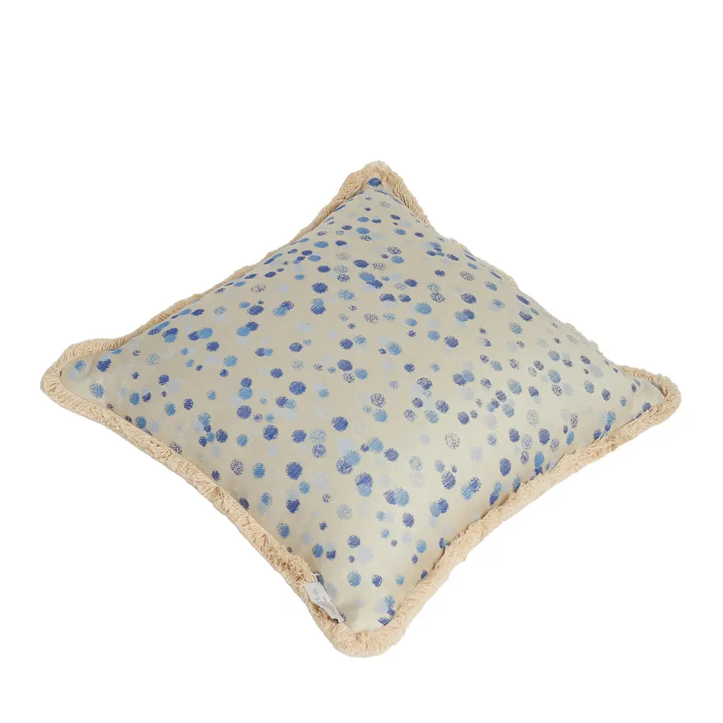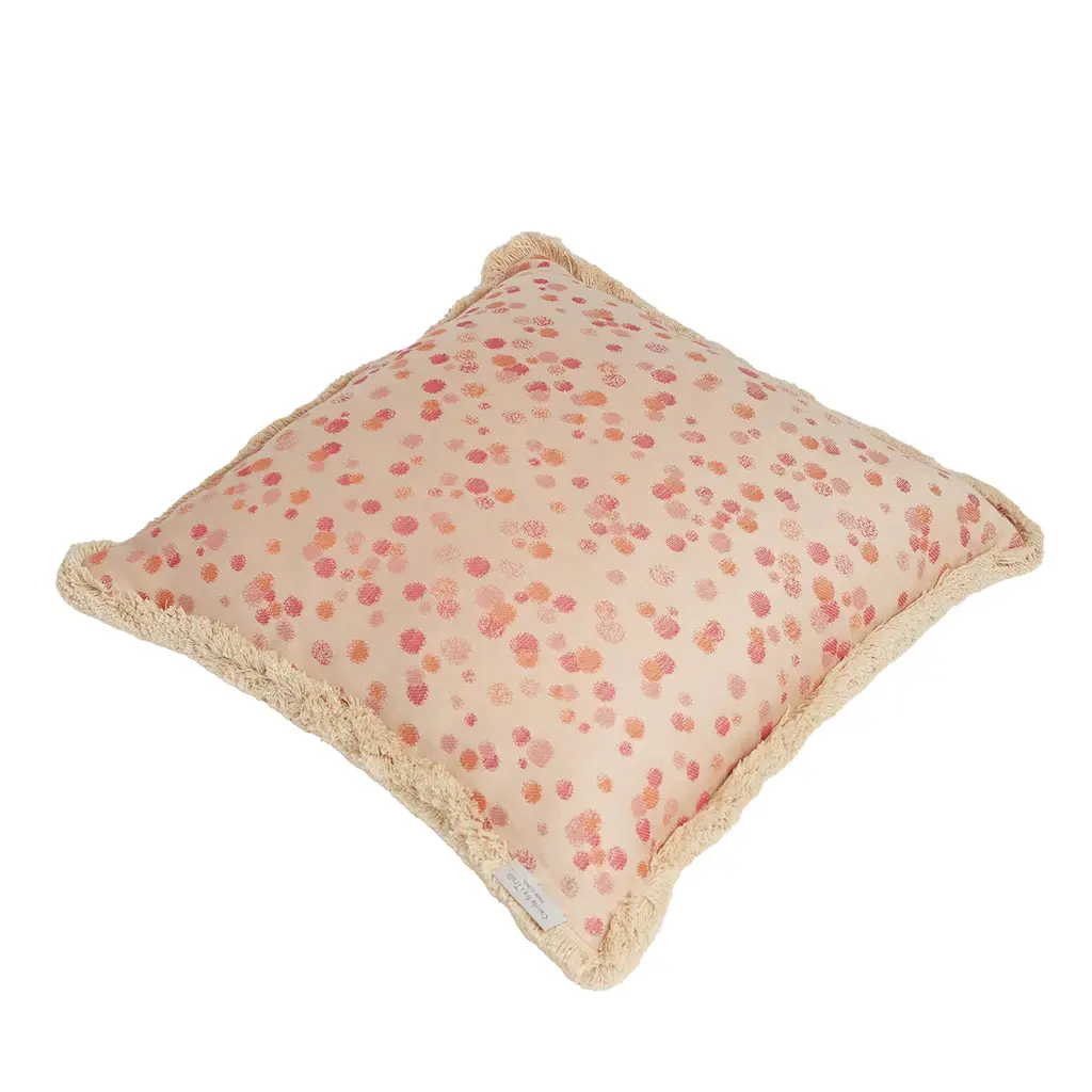 Large luxury decorative cushion in Fuchsia and Red 50x50cm in 100% cotton jacquard fabric with frayed edge. Its exclusive textile pattern is reminiscent of the traditional Apulian macchiato technique, emblematic of the brand as a celebration of the joyful spontaneity of nature. This refined cushion is made entirely by hand in Italy and woven on the ancient looms of a historic Apulian weaving mill with respect for history, nature, and people.