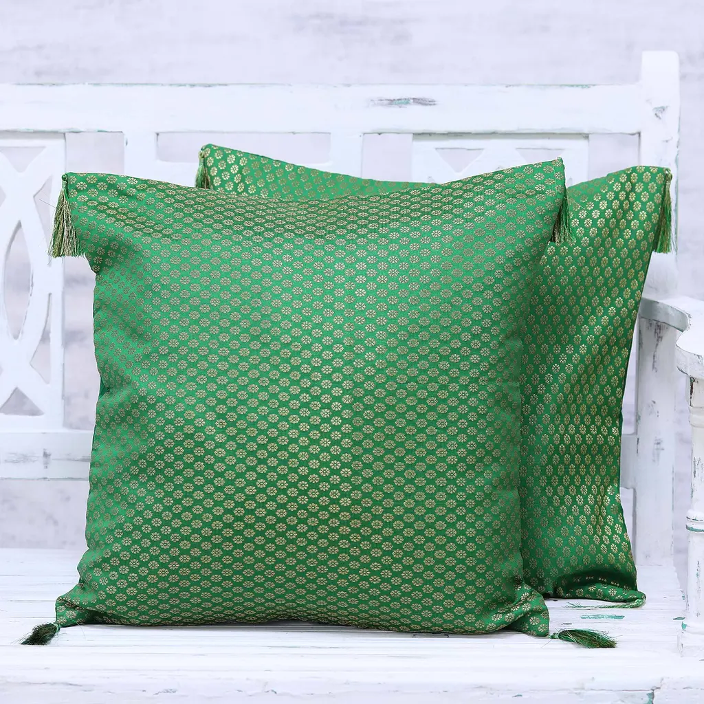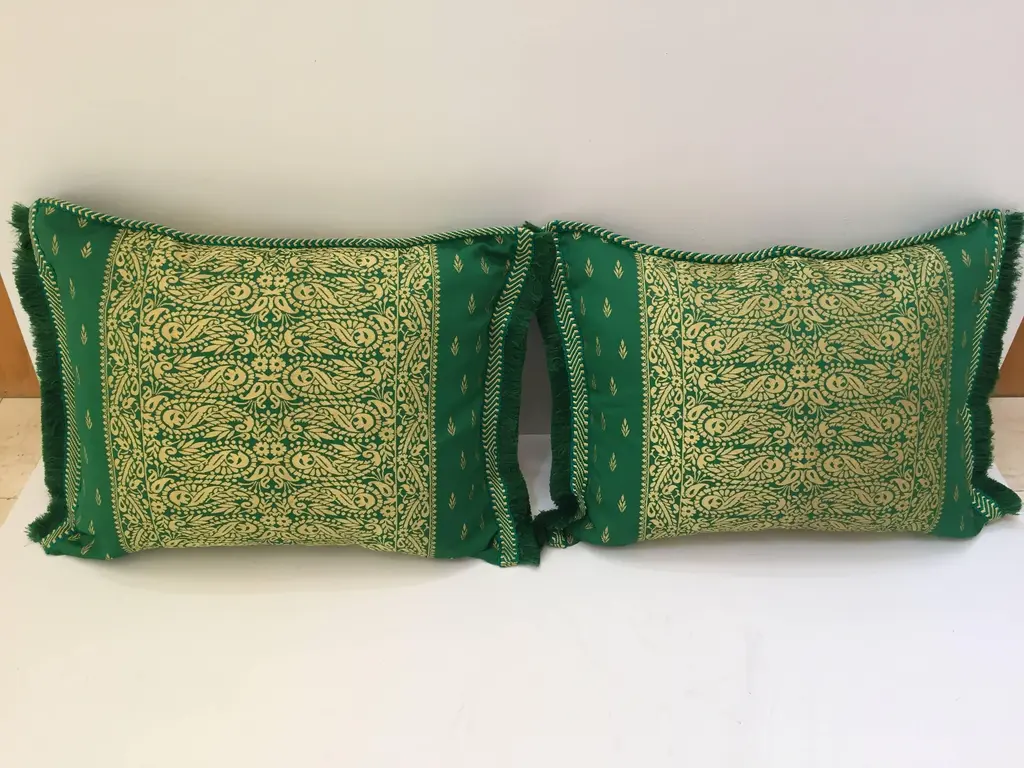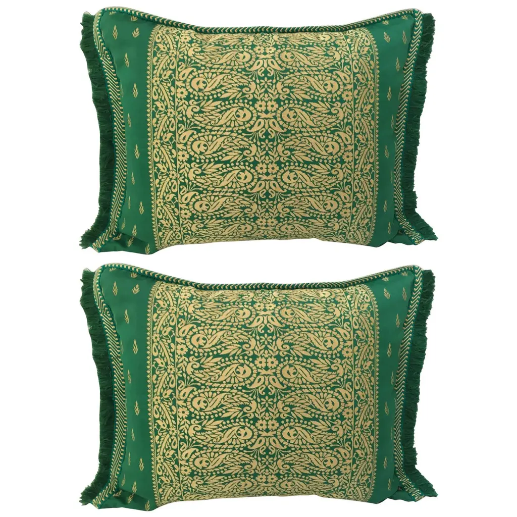 Large pair of Moroccan green throw pillows. Great to use as accent pillows on a bed or sofa throw pillows. Bohemian Moorish stylish large pillows.