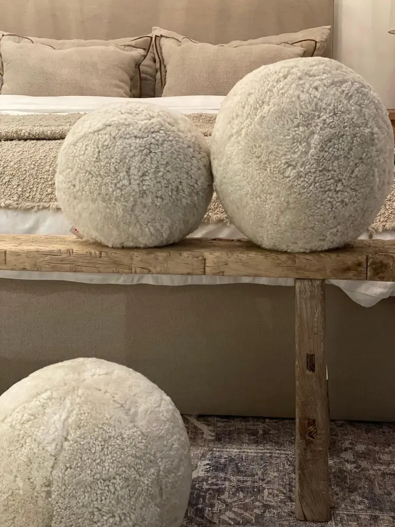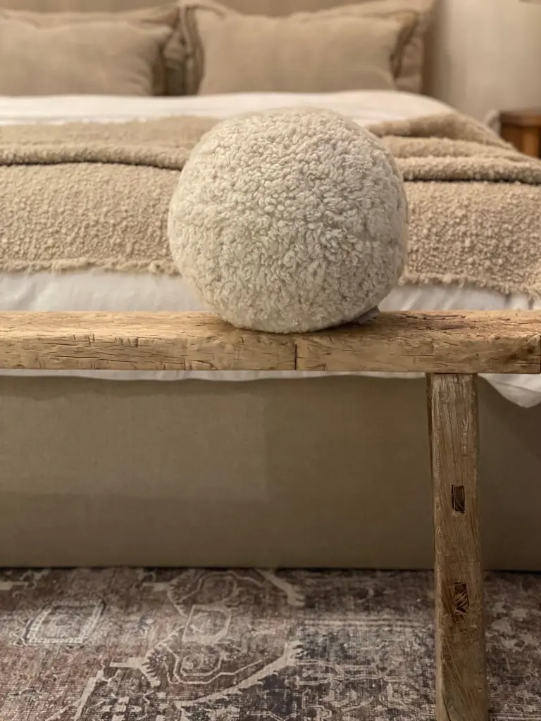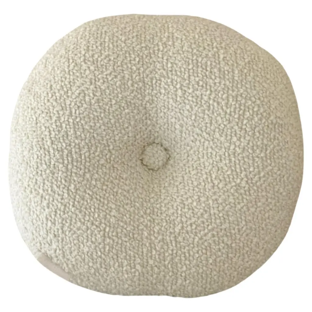 Angelite round Sherpa Sheepskin accent pillowHidden ZipperPoly fill, extremely plush soft hand sherpa accent pillow, perfect for a bed, sofa, or chair.Larger size: 13" diameterColor: Off White/ Natural undyed.
