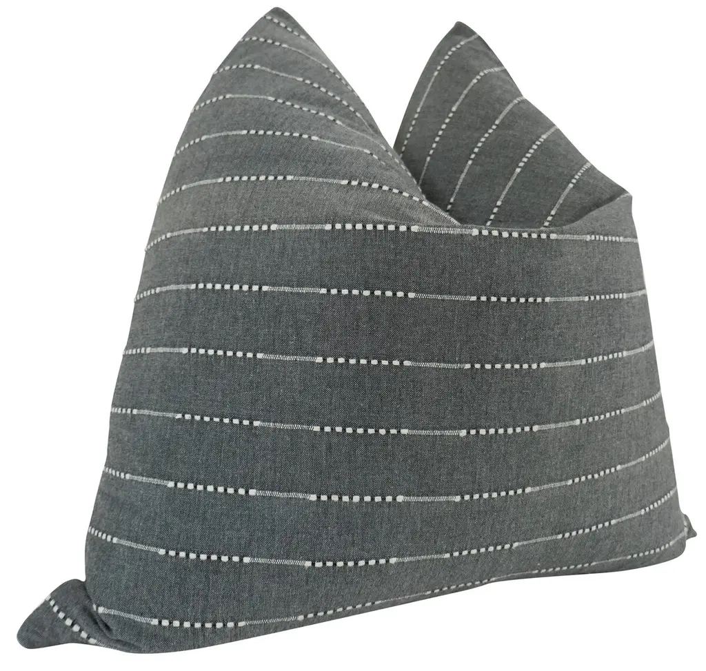 Exclusive to One Kings Lane: Cut and sewn by hand in California, this square pillow brings rich texture and quiet pattern to a room. Plushly filled Ultra-Plump feather-and-down insert, with an invisible zipper closure. Solid white, premium luxe 100% linen reverse side.