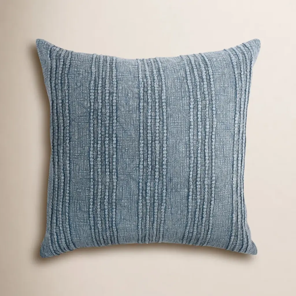 This throw pillow with raised stripes adds cozy, inviting texture to living rooms, bedrooms, and more. The 26” x 26” square pillow is hand-woven in India of cotton and polyester.