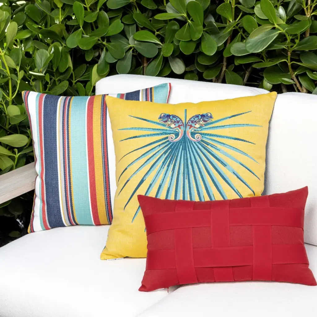 Do you hear that noise? It''s your outdoor area begging for a facelift and what better way to turn up the chic than with our outdoor throw pillow collection? Made from water and mildew proof woven polyester, our indoor/outdoor throw pillow is the perfect way to add some vibrance and character to your boring outdoor furniture while giving the rain a run for its money. Custom printed in the USA for every order. Note: Accessories not included.