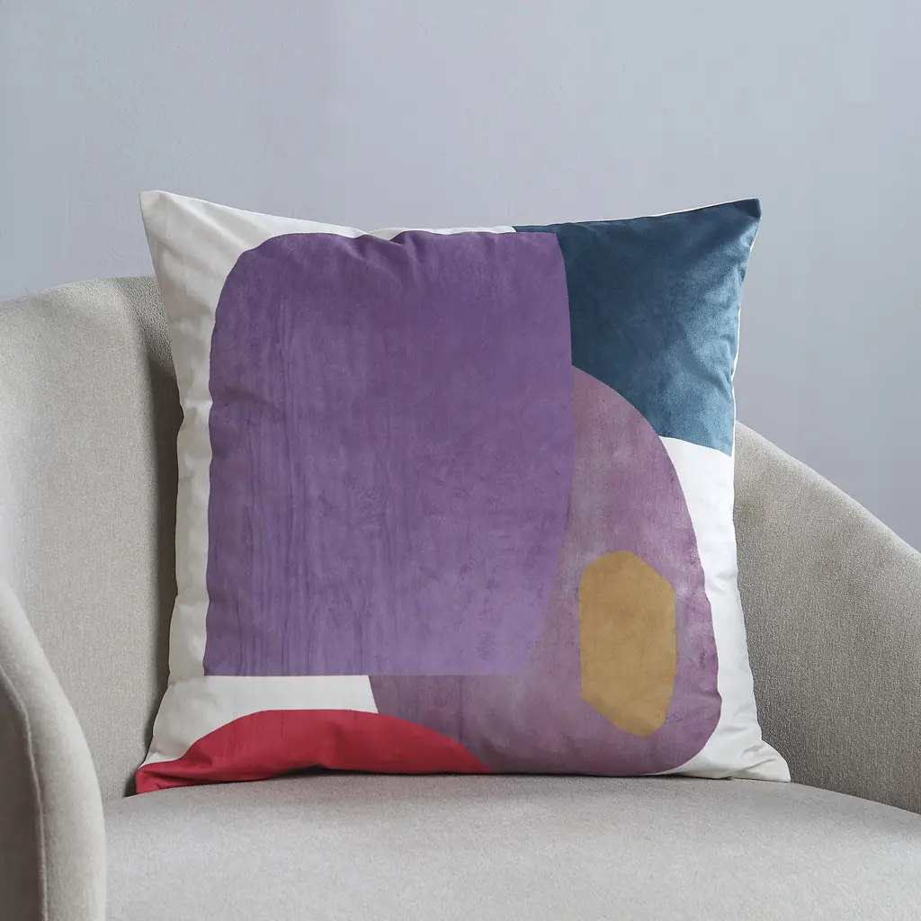 The majestic appeal of purple takes center stage in this throw pillow. Clients styling a modern, artistic living room interior will find this pillow design's vibrant print, and palette not only fits into the space but enhances it. The poly-velvet fabric is not only appealing to the eye, but it also serves as a soft, comforting surface to rest against at any time.