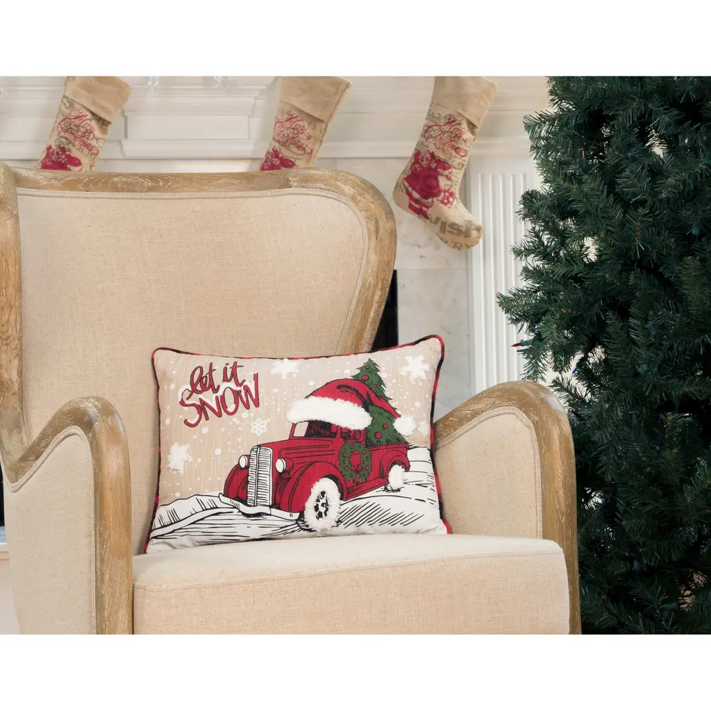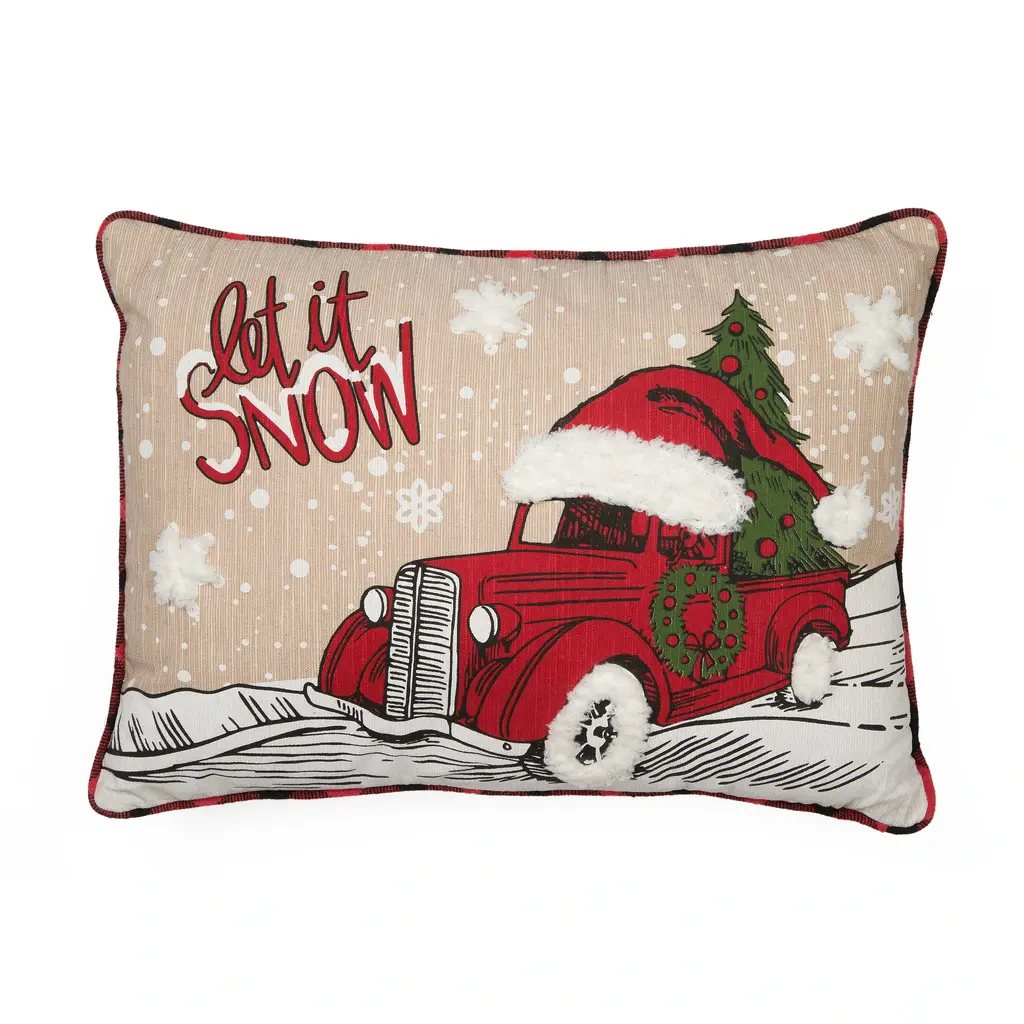 Let It Snow Embroidered Softy Tufted Snow Christmas Car Pillow, 13 By 18-Inch - Applique - Specialty