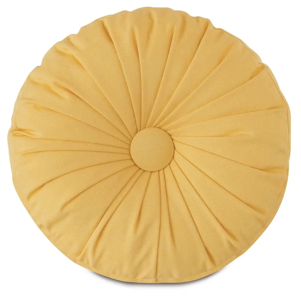 Designed by us and available only at One Kings Lane: The perfect complement to your outdoor furniture, this round pillow is made from durable Sunbrella--an easy-to-clean, solution-dyed acrylic fabric that retains its brilliance season after season. It's also mold-resistant and soil-resistant, making this pillow ideal for the porch, patio, or poolside. We love how ruched pintuck detailing adds texture and movement to the design. Insert included.