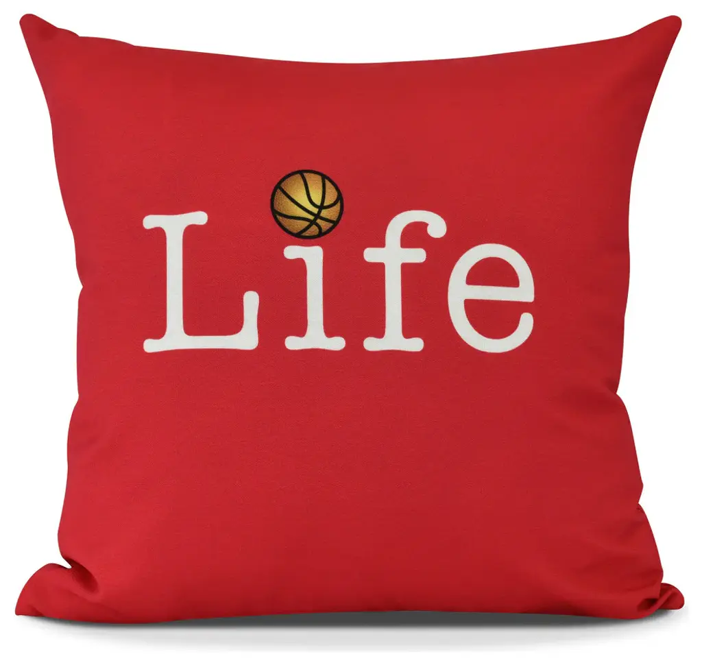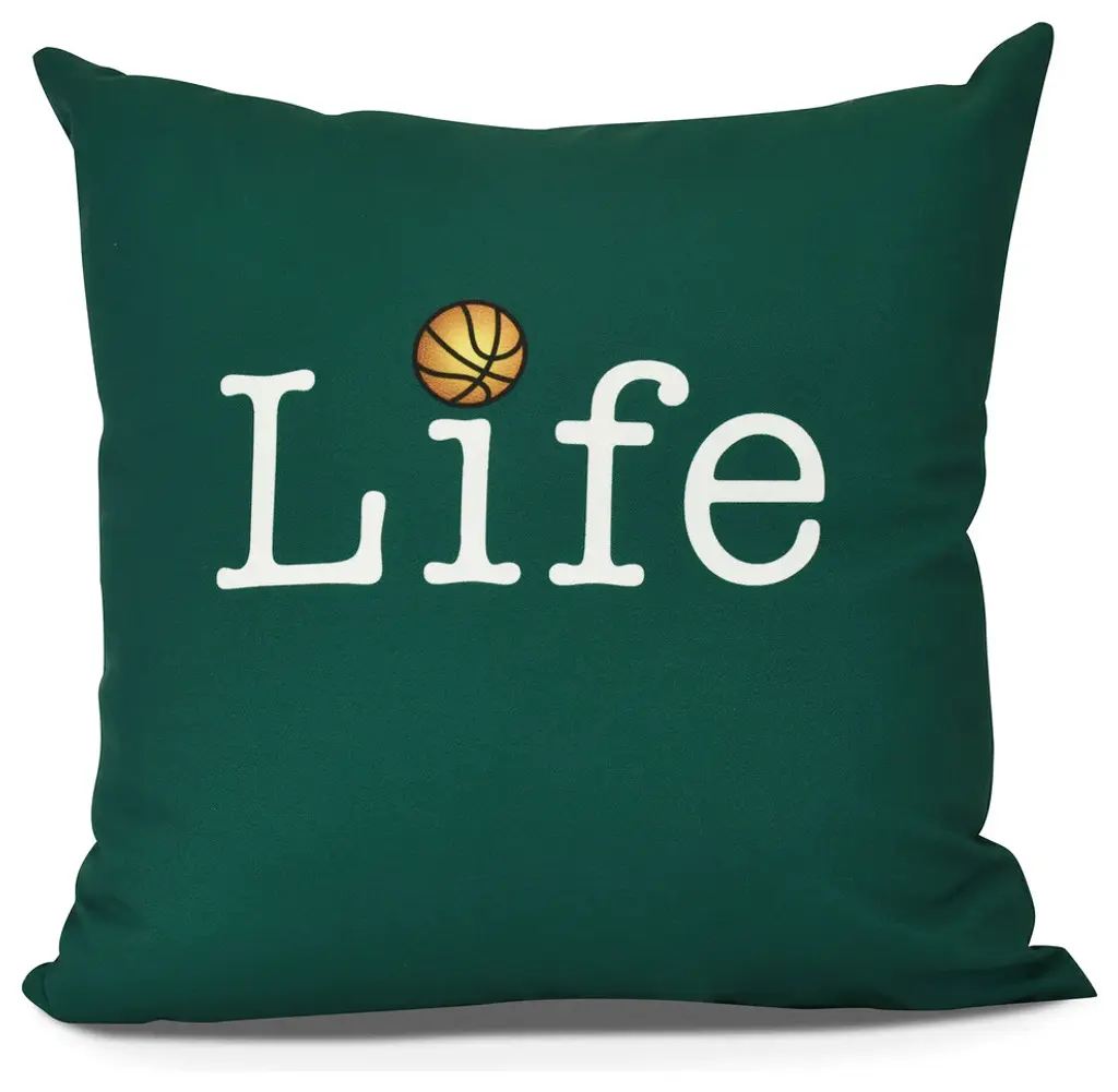 Prepare for basketball season with assistance from E by Design''s lively word print pillow designs! Your decor will always be ready to celebrate game day! These outdoor pillow patterns are a slam dunk!