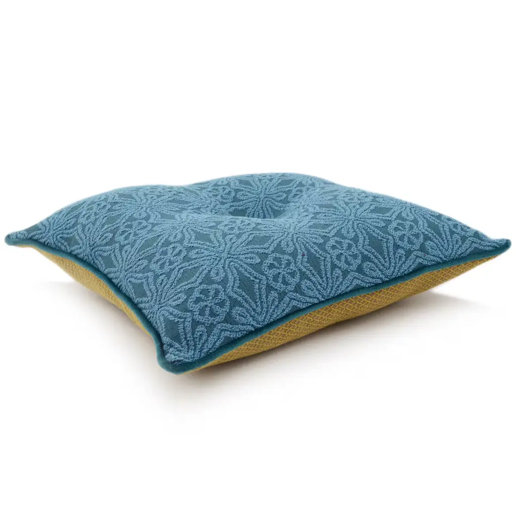 Light Blue Carré Cushion In Floreal Jacquard Fabric