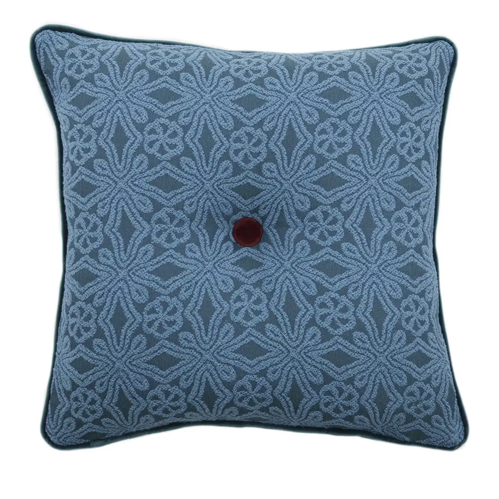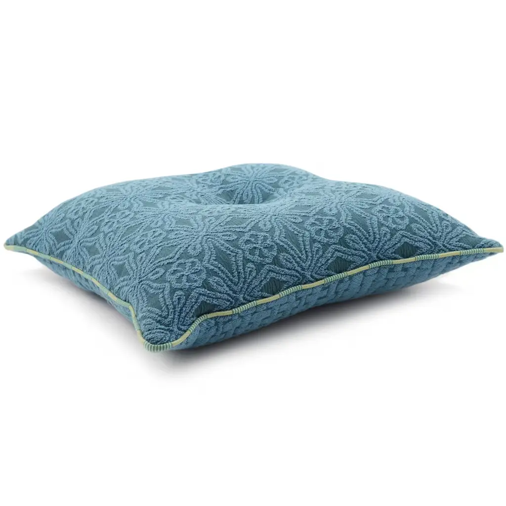 Light Blue Carré Cushion In Floreal Jacquard Fabric
