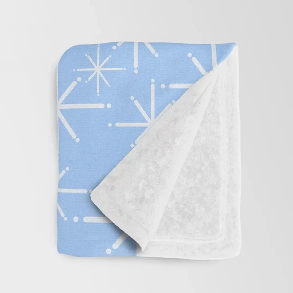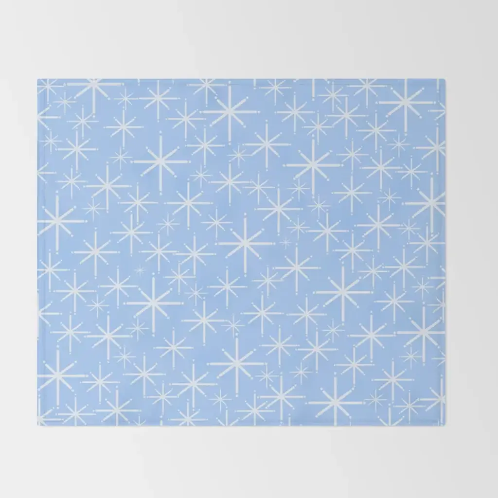 Light Blue Mid Century Modern Twinkling Stars Retro Atomic Pastel Pattern Throw Blanket