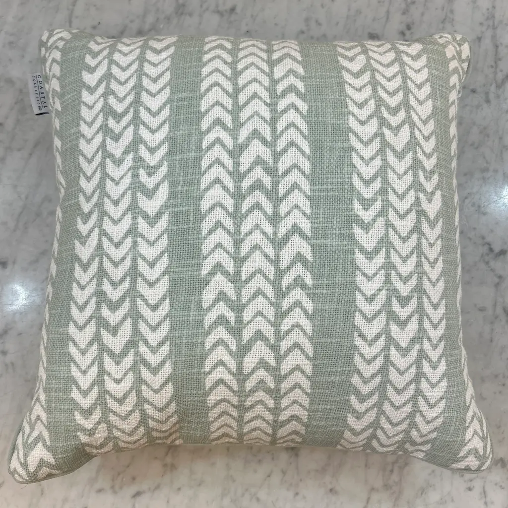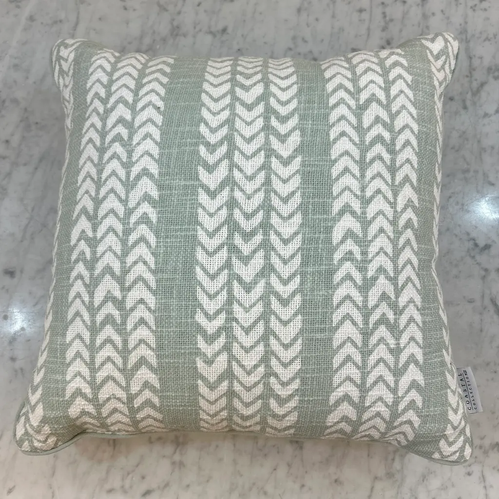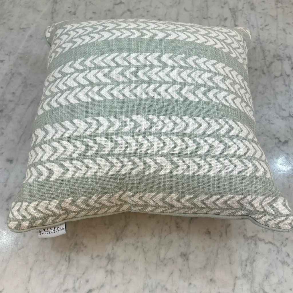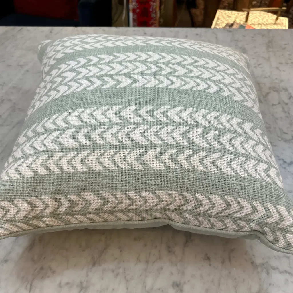 Light green and white chevron pattern pillow. The reverse is solid matching pale green. We have 4 of these pillows all new never used, please inquire.