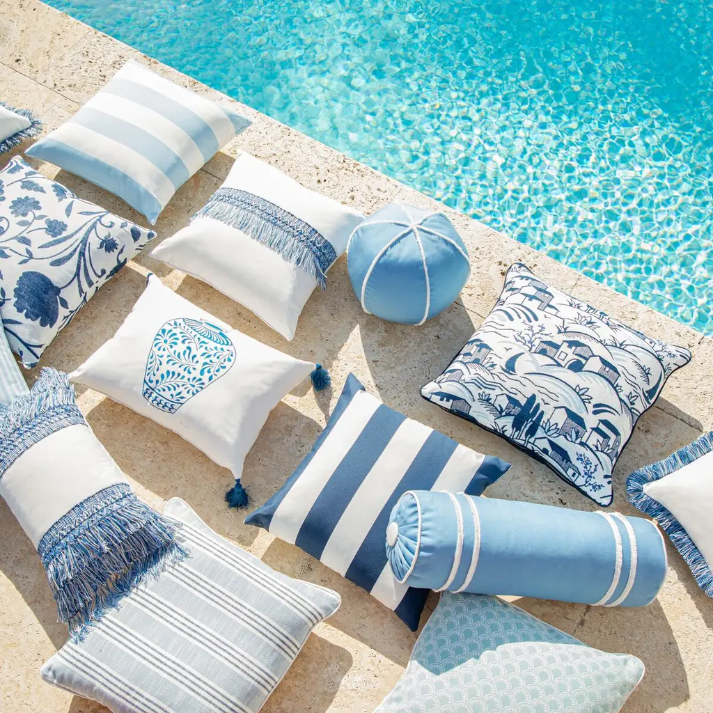Lilo 12" Outdoor Ball Pillow, Blue/white