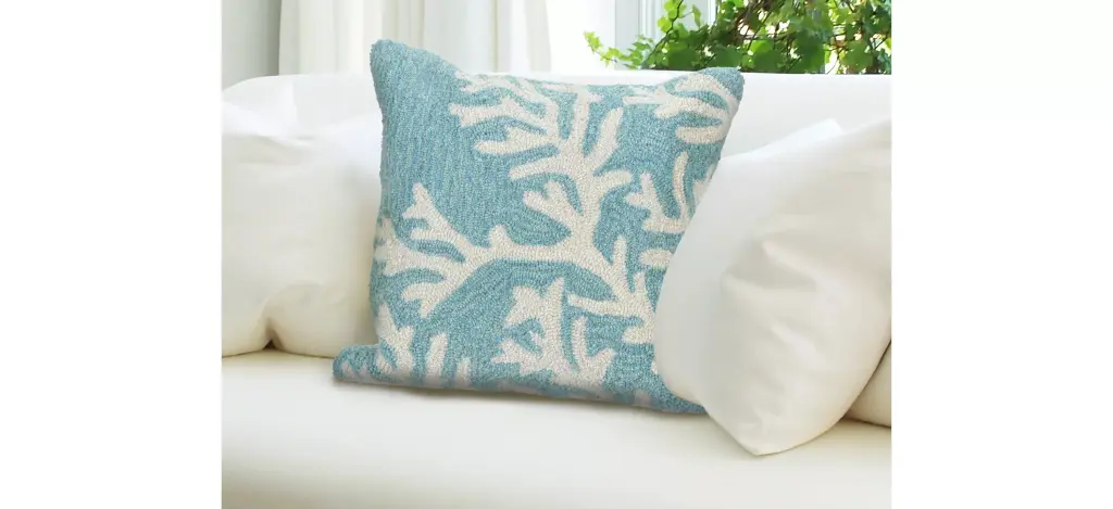 This Liora Manne Frontporch Coral Pillow with richly blended colors and playful novelty designs will delight beach lovers everywhere. This playful and easy care pillows will add character to any area of your home, in blue. This hand hooked pillow is made with a tufted Polyacrylic face, a 100% Polyester back and a 100% Polyester insert making it suitable for indoor and outdoor use. It is easy-care and has a removable cover with a durable zipper closure. These playful and easy-care pillows will add character and visual interest to any area of your home.