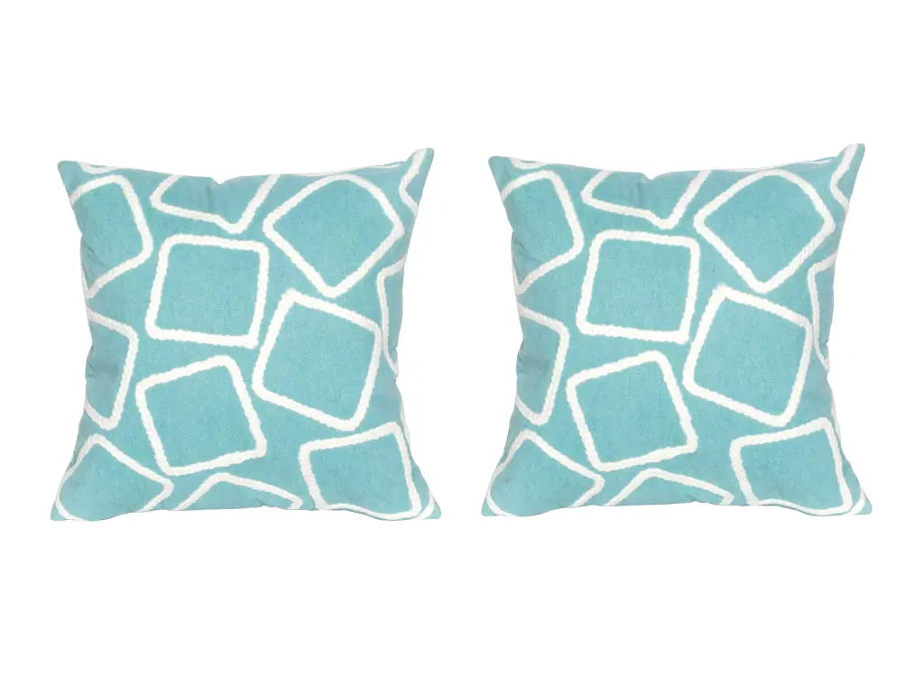 This textural Liora Manne Visions I Squares Pillow in a clean, geometric design is handcrafted by Master Artisans using hand-guided crewelwork embroidery. This embellishment adds even greater dimension to Liora Manne's patented Lamontage process which combines art with cutting edge technology, in blue. The 100% Polyester face makes this pillow suitable for Indoor or Outdoor use and easy to clean. It is easy-care and has a removable cover with a durable zipper closure. This versatile Lamontage pillow is ideal for use on any chair or sofa, and the artistic designs will enhance the d_cor of any room of the home.