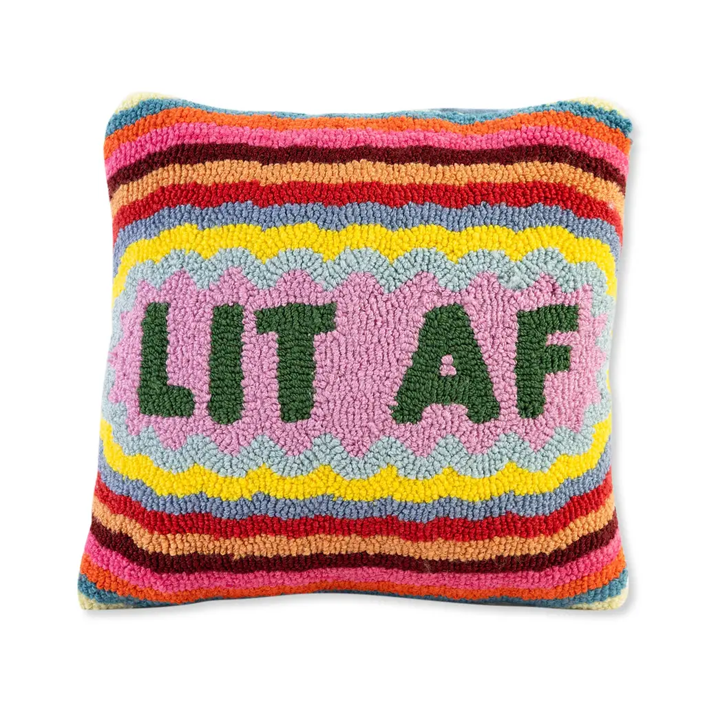 For the ones who know that when it’s time to turn up, it’s all about going hard. This pillow is for those who say, ‘Lit AF,’ because if you’re not sipping something strong and keeping the party going, what’s the point? Embrace the latest joy-inspired decor movement, and transform your home with Furbish Studio’s Needlepoint and Statement Pillows. Our pillows feature vibrant patterns, playful prints and uniquely-you sayings that spark happiness and guarantee LOLs – because your home should make you smile every day. Make a statement with this charming-meets-chic pillow. With over 100 styles to choose from, they are sure to spark joy, plus they make the perfect gift! Check out the full collection here. Measures 14" x 14" - Small pillow, big statement!