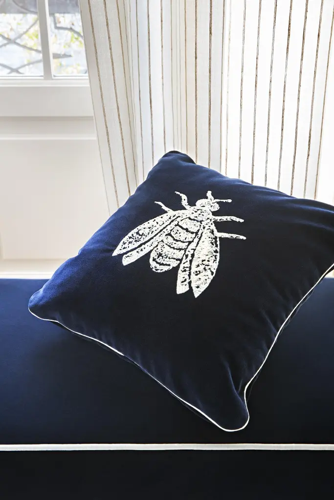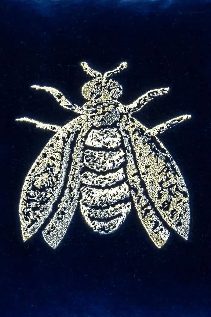 Little Joys Cotton Velvet Pillow With Embroidered Bee, Dark Blue Color