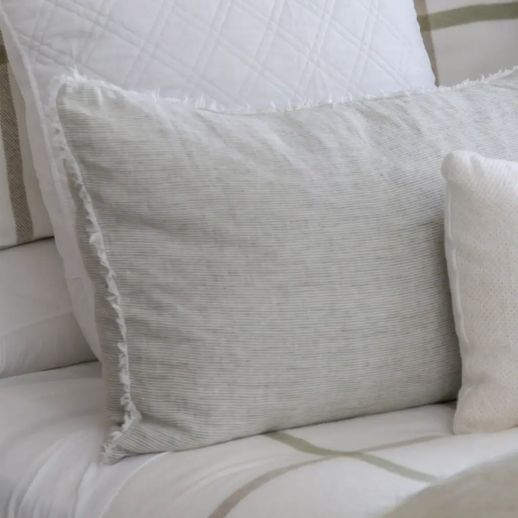 Subtle frayed edges of soft linen add a dash of unexpected detail to this Logan Collection. Woven with two different colored yarns for a heathered effect, features a zipper closure. Features