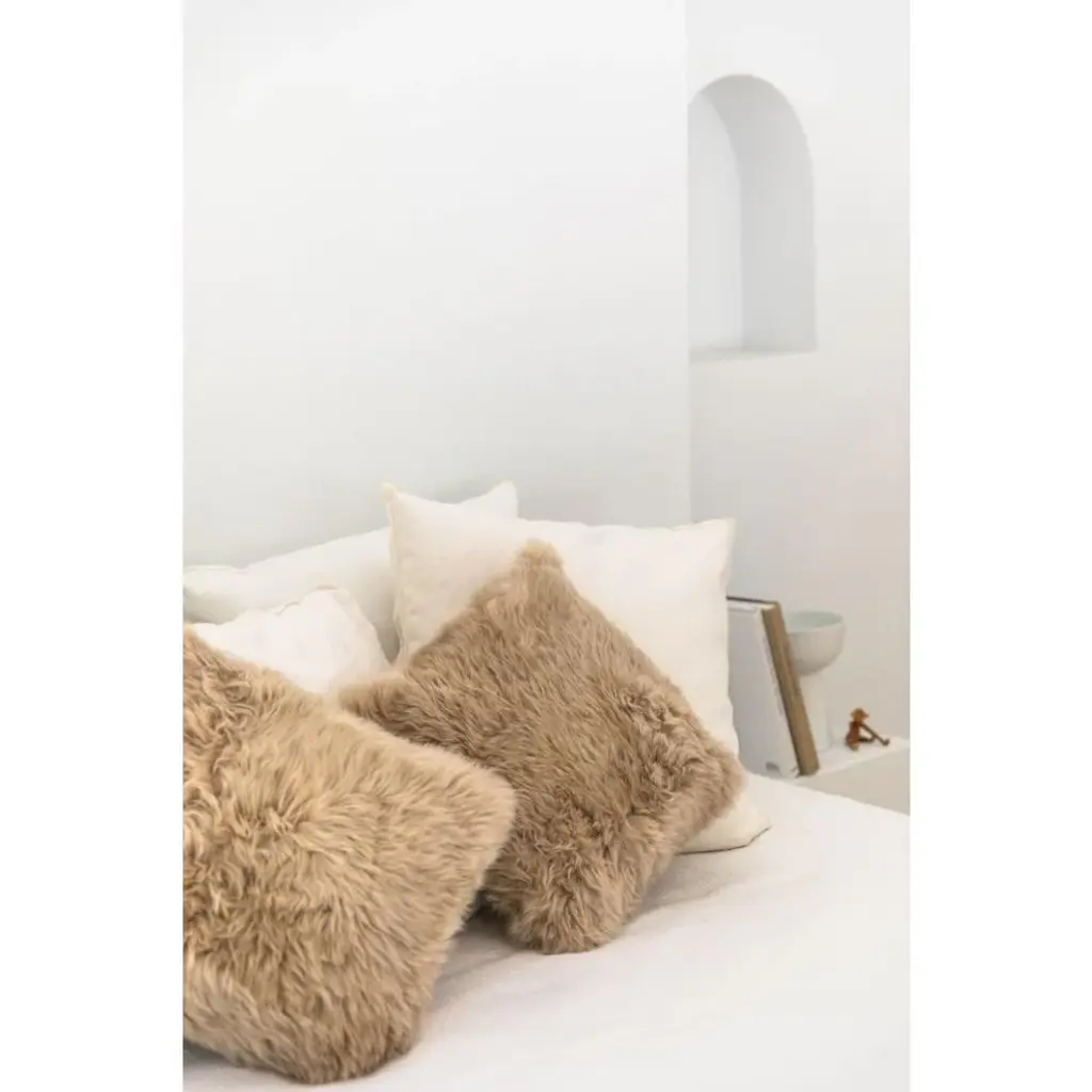 Genuine Australian sheepskin pillows are offered in a range of neutral tones and sizes. A luxurious and welcome look with alpine-lodge-style to add to a sofa, chair or bed. Layer these in with other comfortable textures for curl-up comfort.