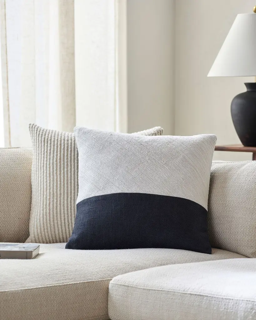 Loomed Linen Colorblock Pillow, Off-white/onyx