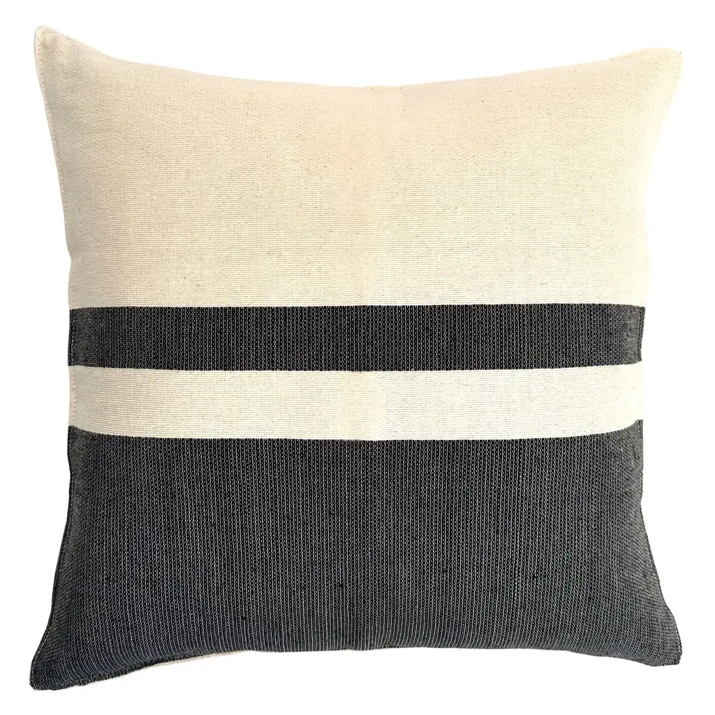 Loomed Linen Colorblock Pillow, Off-white/onyx