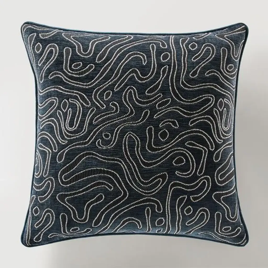 A Multi-tonal Onyx Ground Contrasts With Sandy Abstract Loops In Sunbrella Solution Dyed Acrylic. Complete With An Invisible Zipper And Filled With A Plush, Microdenier Polyester Inside A Water-resistant Casing. Made In The USA.