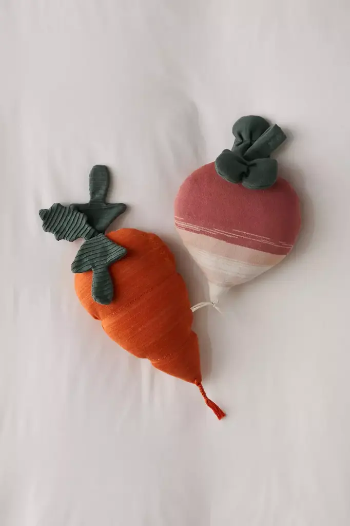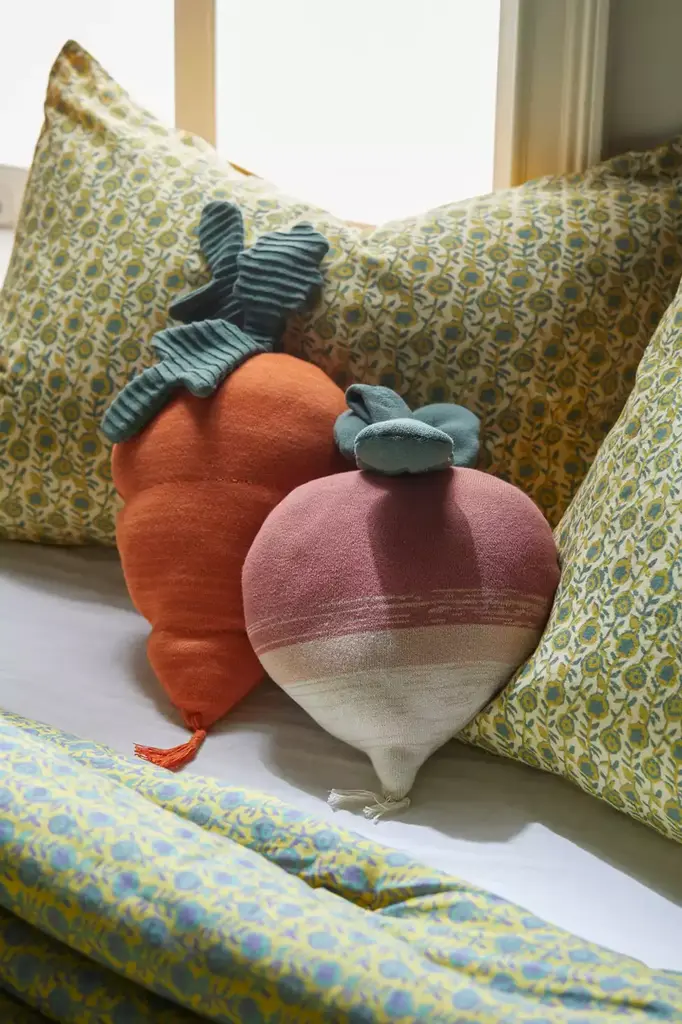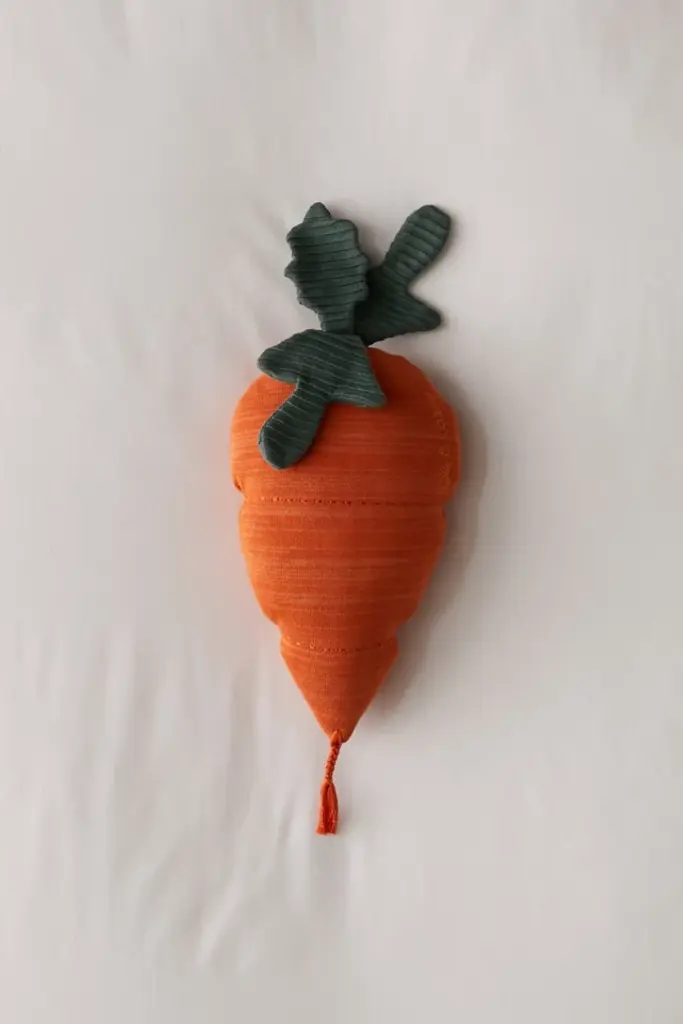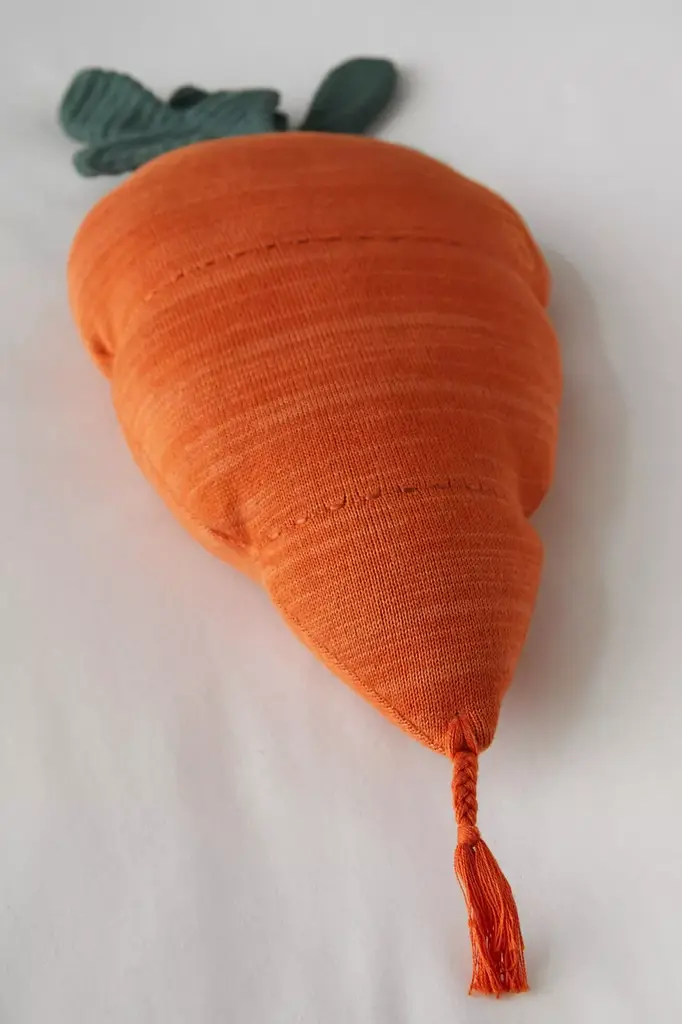 Make like a bunny and snuggle up with this knitted throw pillow from Lorena Canals. Made from seriously soft cotton, this throw pillow features a wavy, carrot silhouette. Complete with a polyester filling that makes the coziest headrest or floor cushion. **Features** \- Carrot-shaped throw pillow from Lorena Canals \- Polyester filling makes a cozy cushion \- Versatile - use it to add a soft touch to your bed or sofa \- An eco-friendly upgrade, this item is OEKO-TEX® Standard 100 certified free of harsh chemicals **Content + Care** \- 100% Cotton; 100% polyester fill \- OEKO-TEX® Standard 100 Certified \- Meets OEKO-TEX® Standard 100 guidelines which independently test each component for harmful substances for textiles you can trust \- Machine wash \- Imported **Size** \- Dimensions: 16"l x 10"w